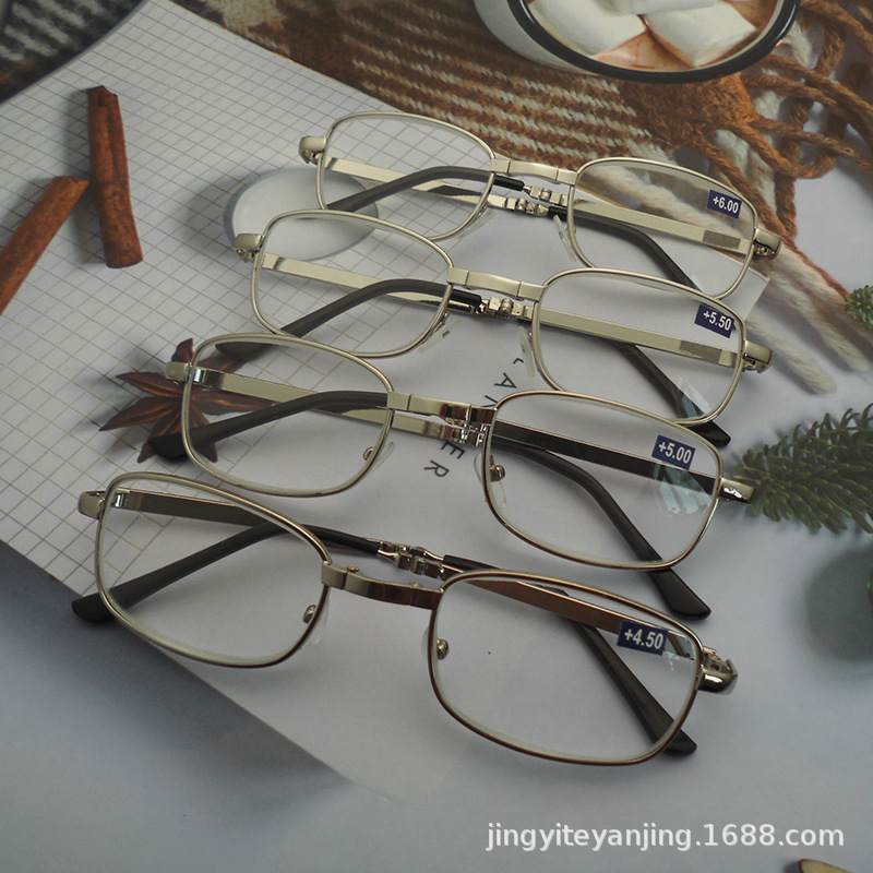 Manufacturers directly supply new height folding reading glasses optical glass metal old glasses 450 degrees -600 degrees