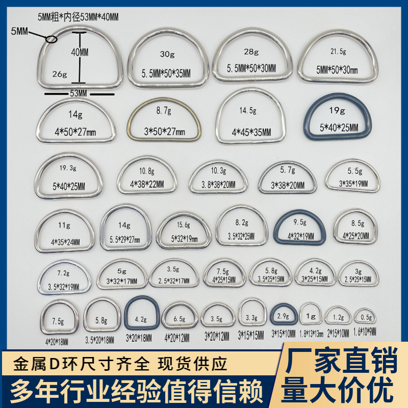 | nameOriginal | Manufacturers in stock supply metal D-shaped buckle luggage iron D-ring traction rope buckle stainless steel D-buckle size is complete |