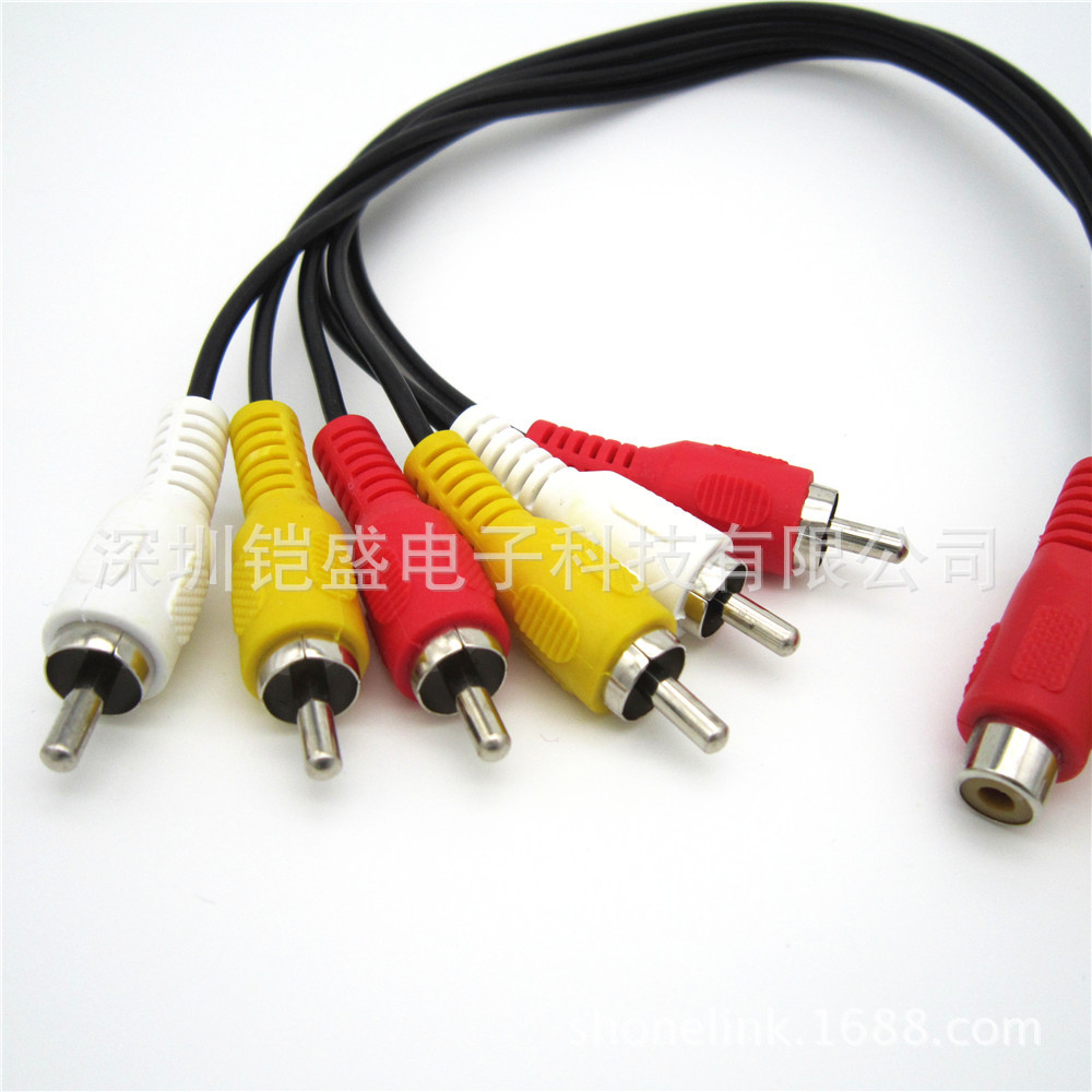 Manufacturers supply 3RAC female to 6RCA male audio cable 3 female to 6 male AV Video Cable 1/2 pure copper spot