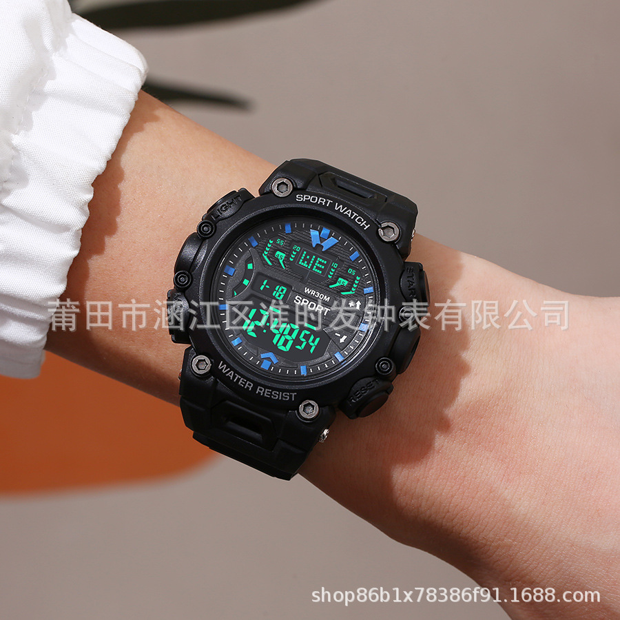 Manufacturers wholesale men’s waterproof sports multifunctional cold light electronic watch outdoor cross-border fashion large dial box
