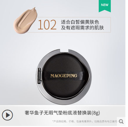 | nameOriginal | Mao Geping luxury caviar flawless skin nourishing air cushion foundation 8g, concealer and moisturizing, long-lasting, no makeup removal |