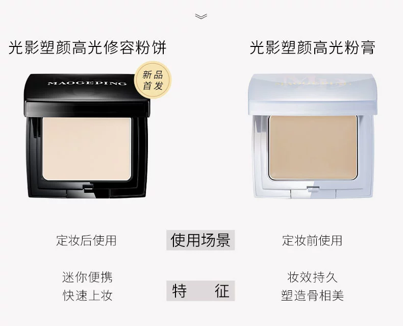 | nameOriginal | Mao Geping matte high-gloss repair powder and high-gloss cream three-dimensional face brightening tear trough all-in-one plate powder and setting powder |