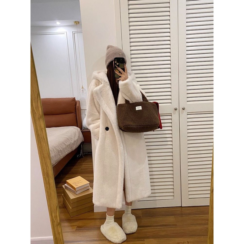 | nameOriginal | Mao Mao coat women's winter leather one-piece padded leather hooded lazy style imitation mink velvet loose-fit mid-length coat |