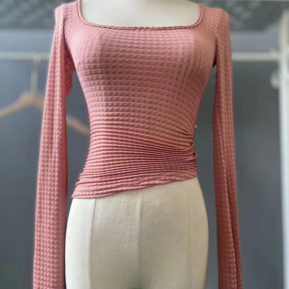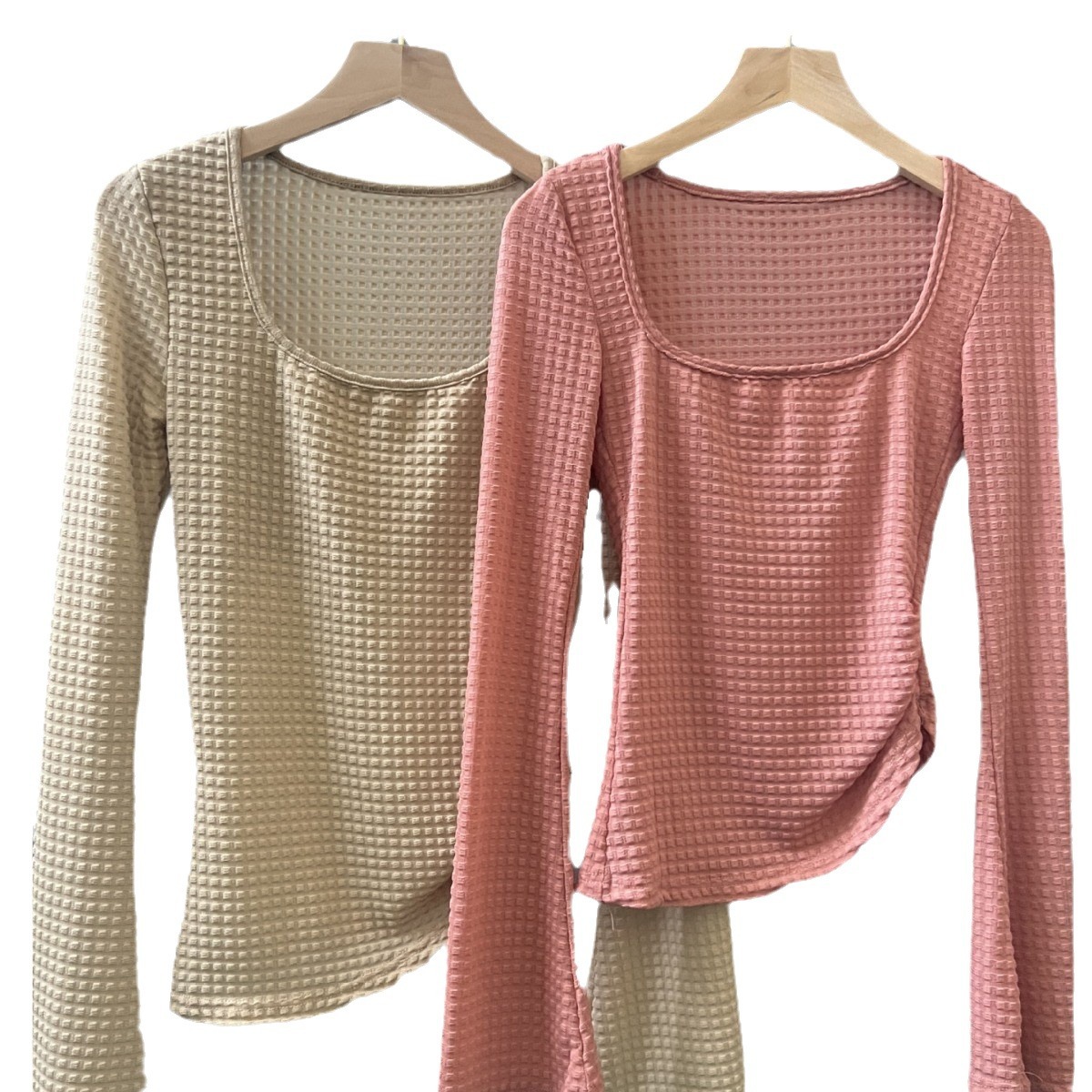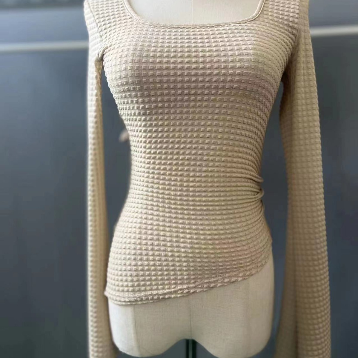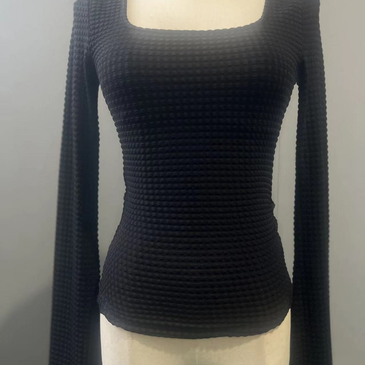 Maple Edge Autumn New Pure Desire Style Mousse Plaid Square Neck Long Sleeve Horn Sleeve Slim-fit Vintage Elegant Thin Top