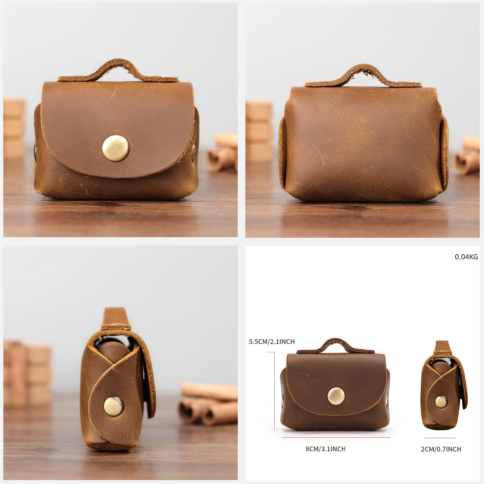 Marante Genuine Leather Mini Mobile Phone Bag Series Top Layer Cowhide Headphone Storage Bag Mini Mobile Phone Bag Small Square Bag Trendy