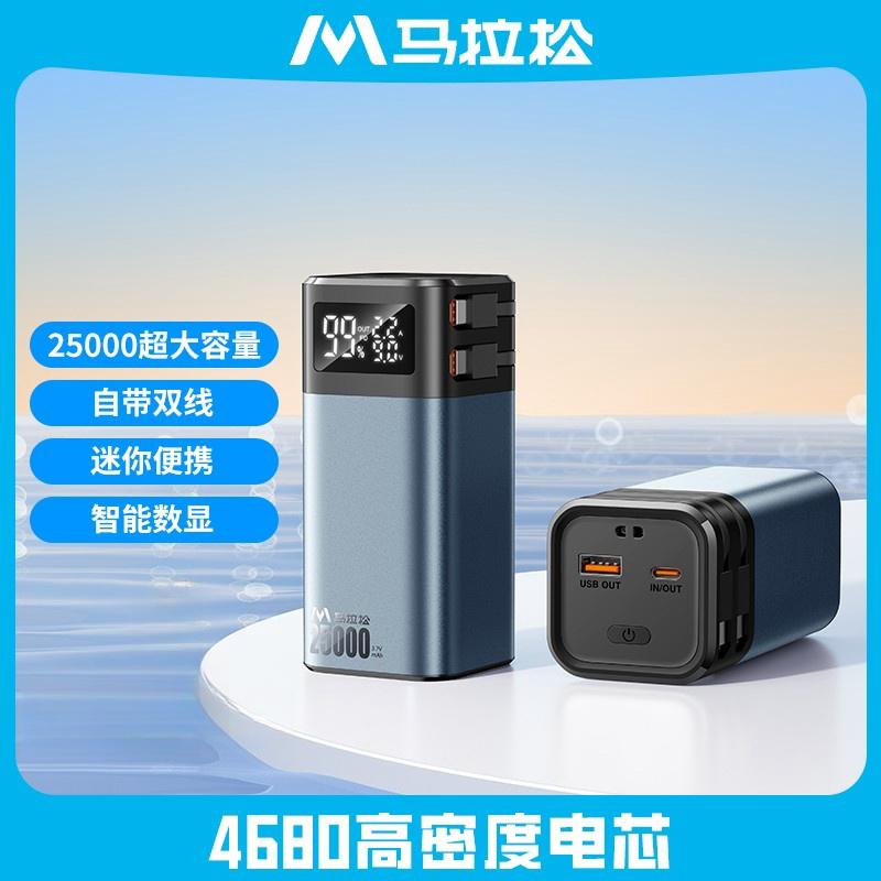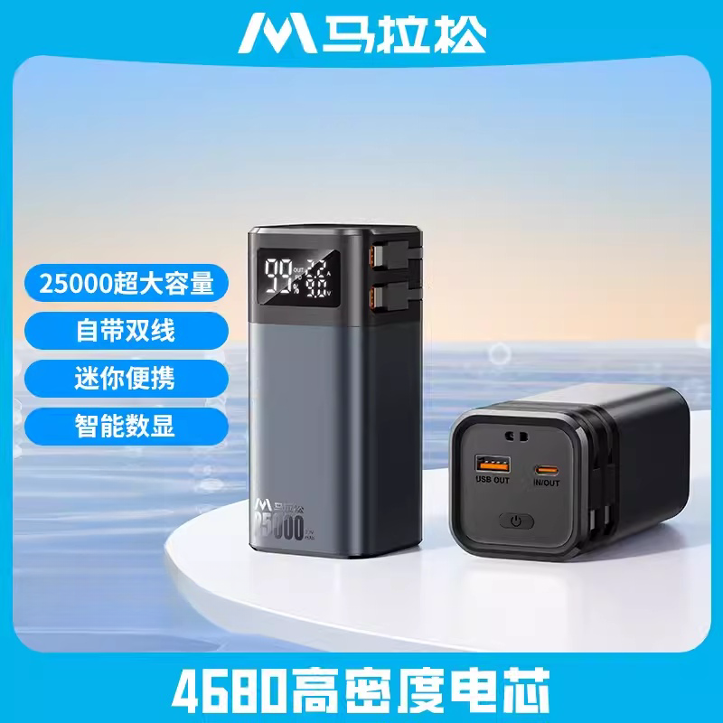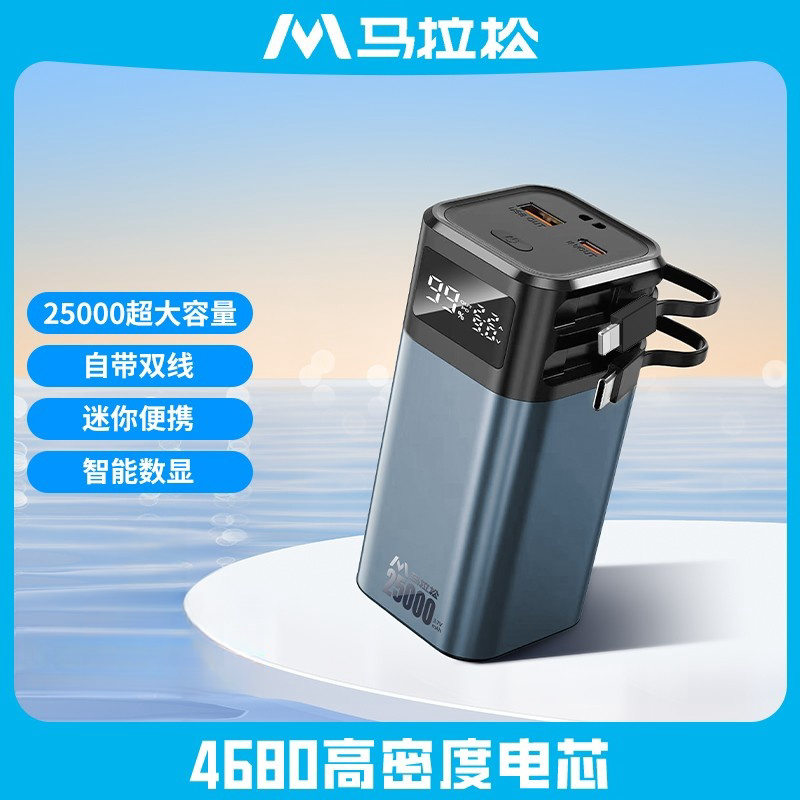 | nameOriginal | Marathon 4680 power bank with built-in cable for fast charging, super large capacity of 25,000 mAh, can be carried on the plane, new model |