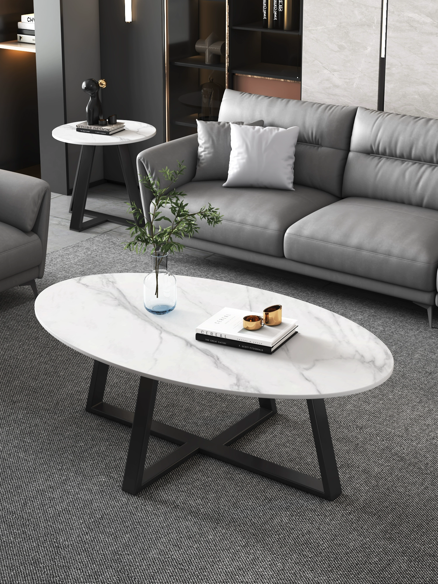 | nameOriginal | Marble living room minimalist oval slate coffee table |