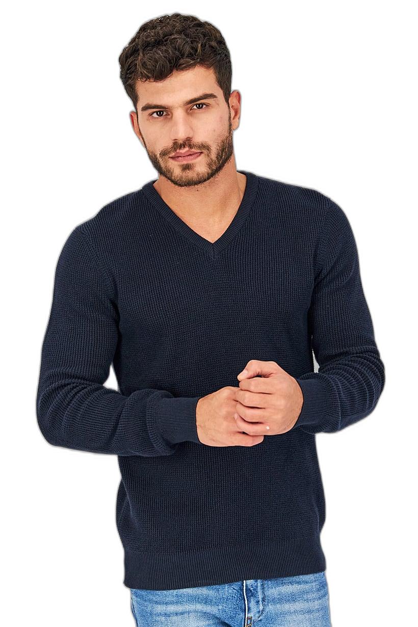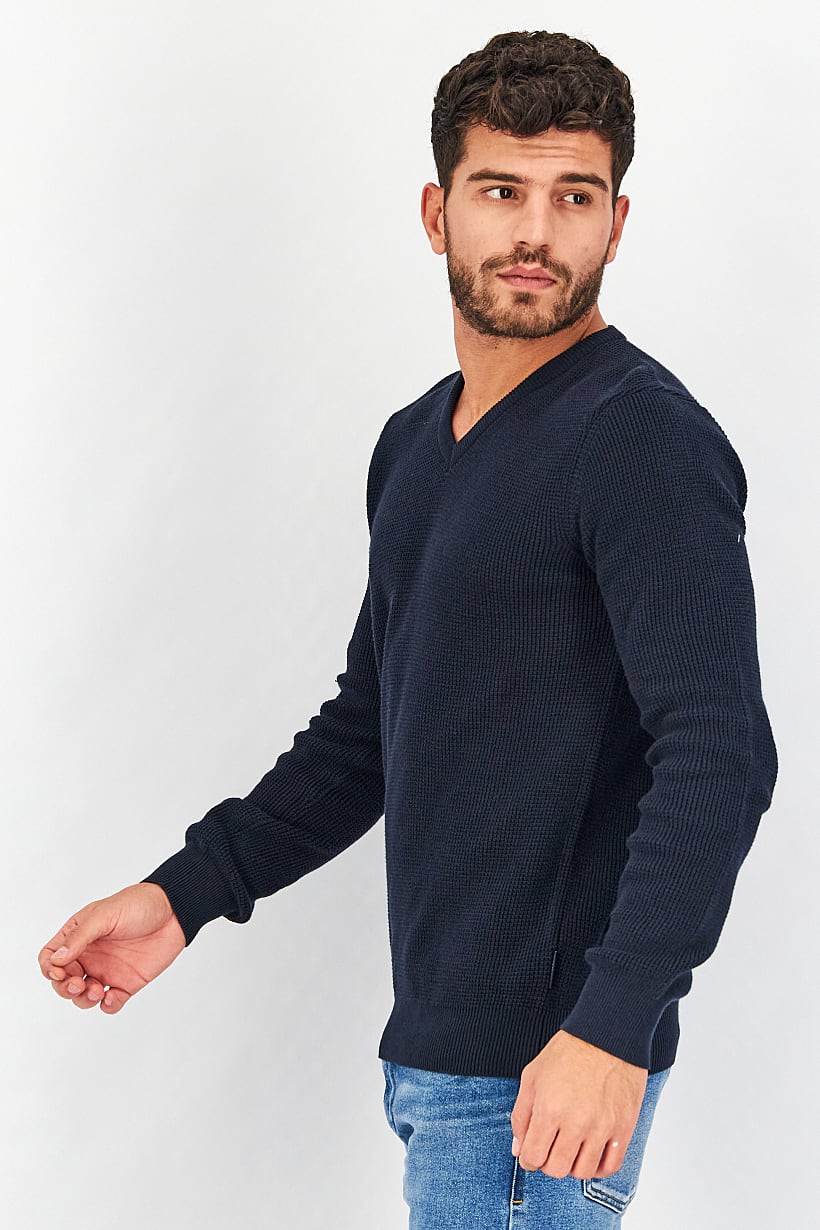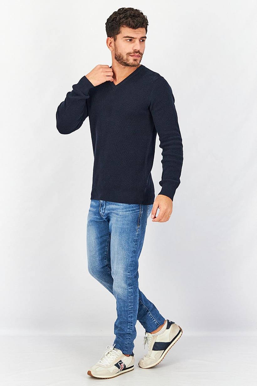 | nameOriginal | Men V-neck Knitted Long Sleeve Sweatshirt, Marine Blue |