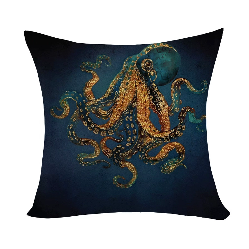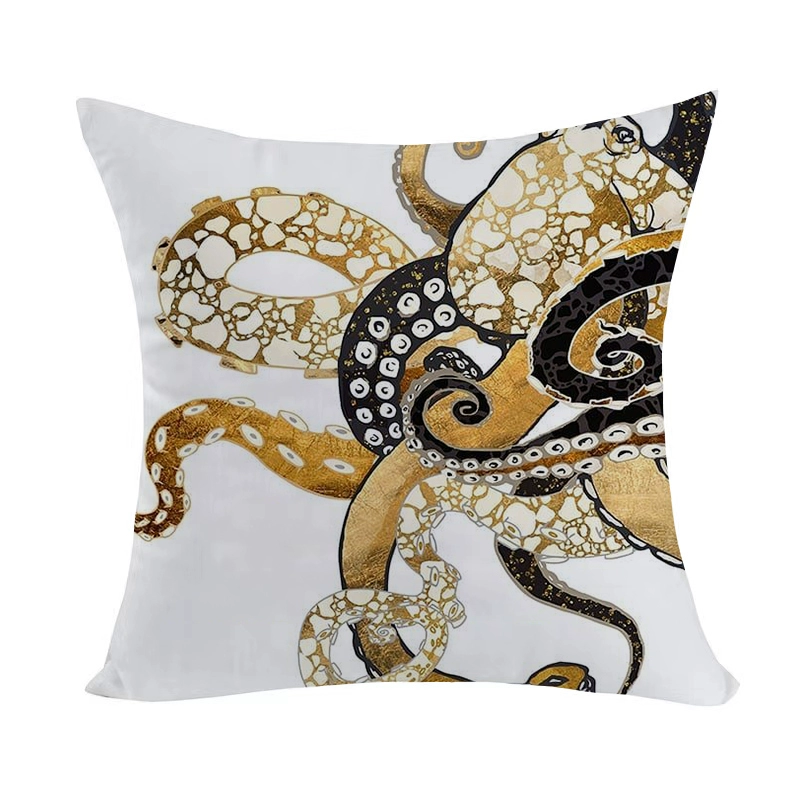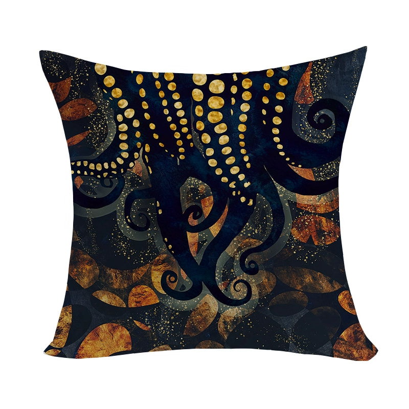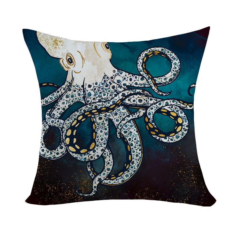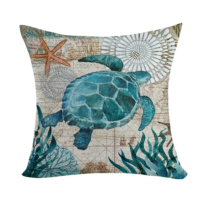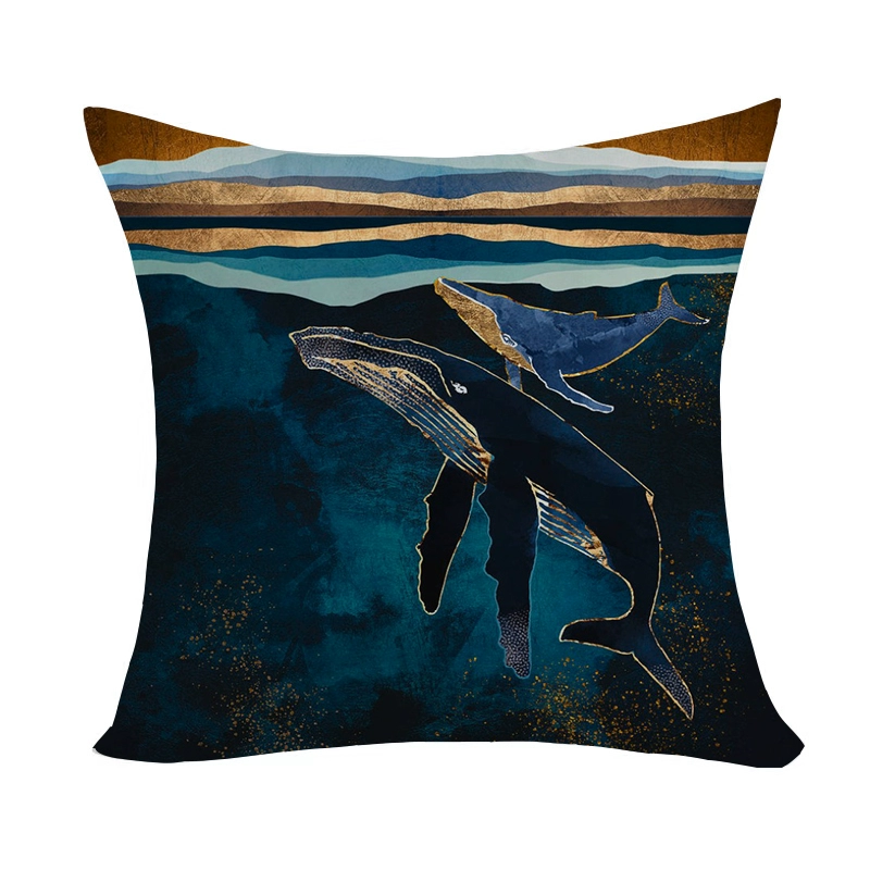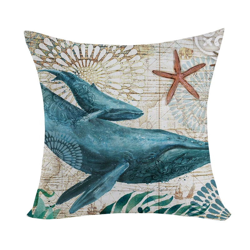 Marine pattern oil painting pillow cover living room sofa decorative cushion cover light luxury ethnic style plush print pillow