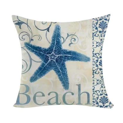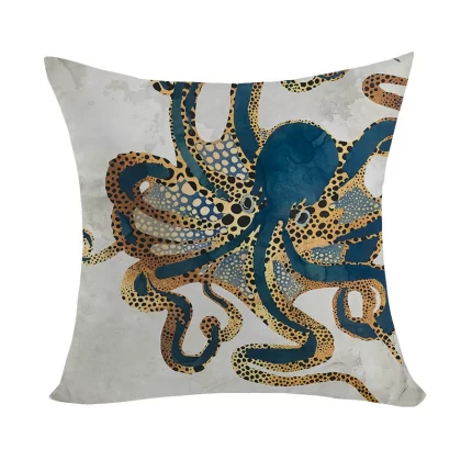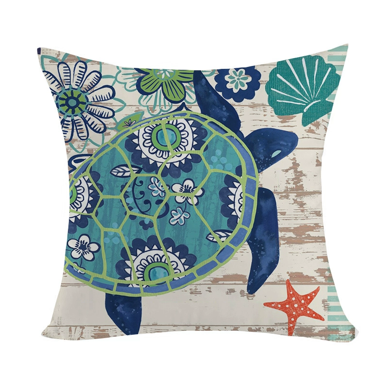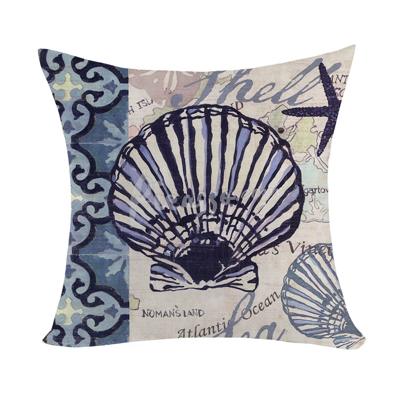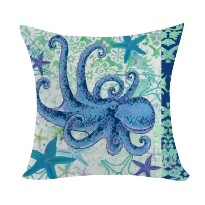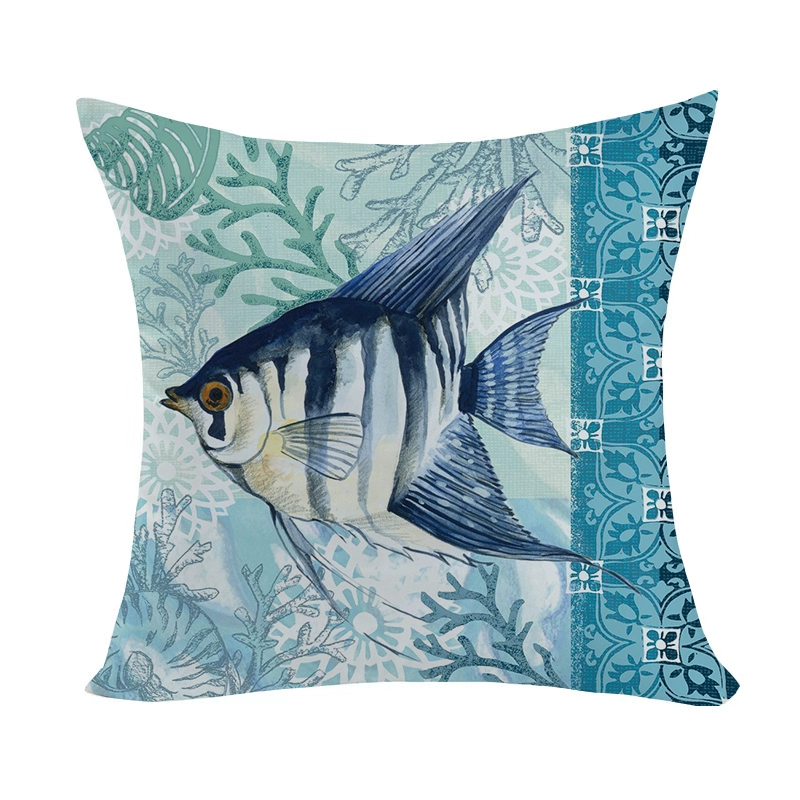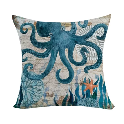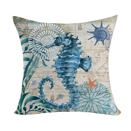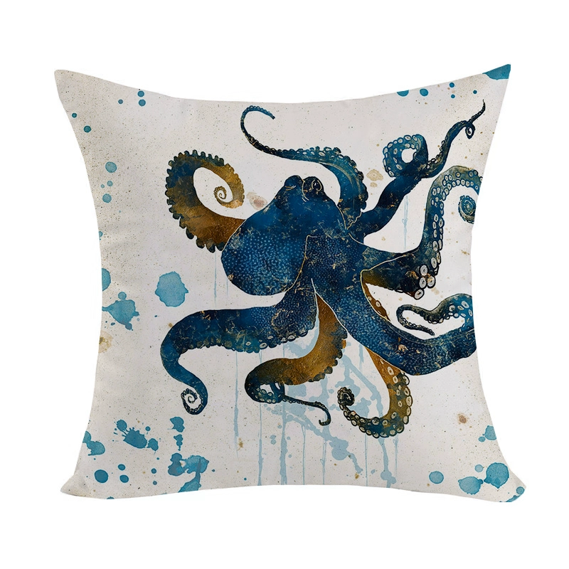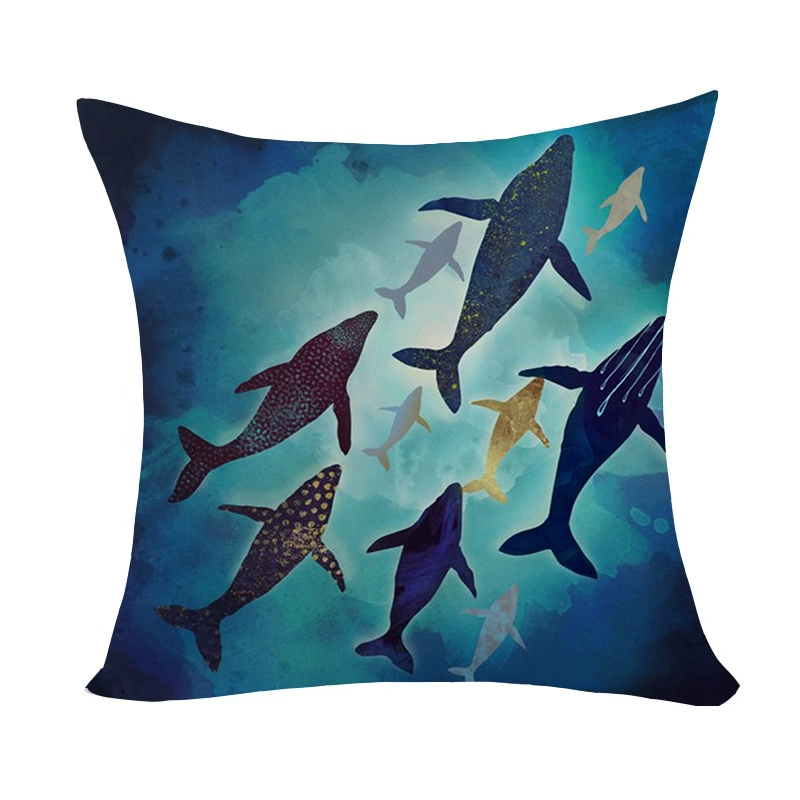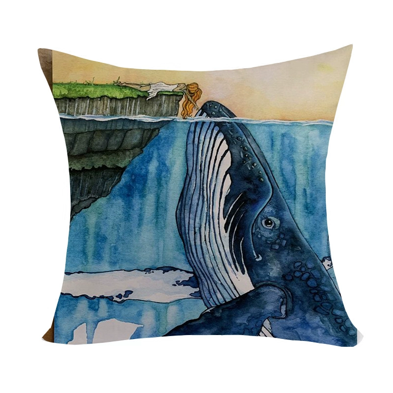 Marine pattern oil painting pillow cover living room sofa decorative cushion cover light luxury ethnic style plush print pillow
