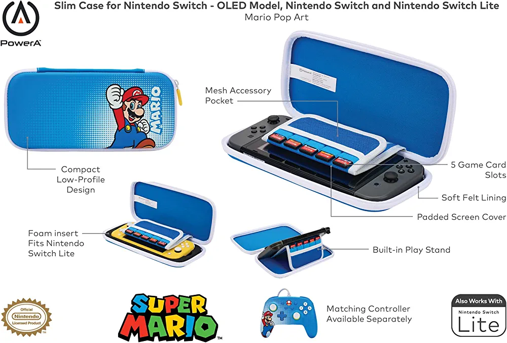 PowerA Slim Case for Nintendo Switch – OLED Model, Nintendo Switch or Nintendo Switch Lite – Mario Pop Art
