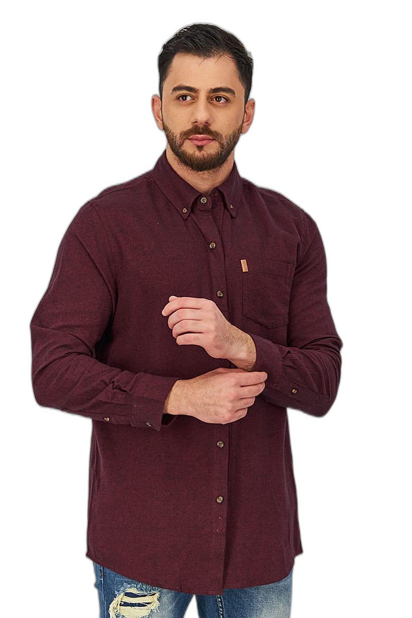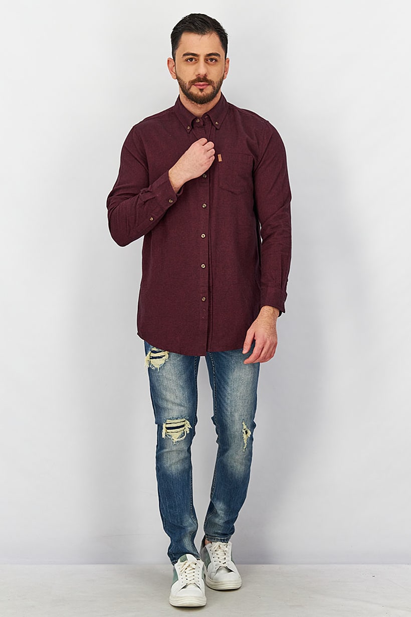 Maroon Brushed Flannel Men’s Casual Shirt with Long Sleeves.