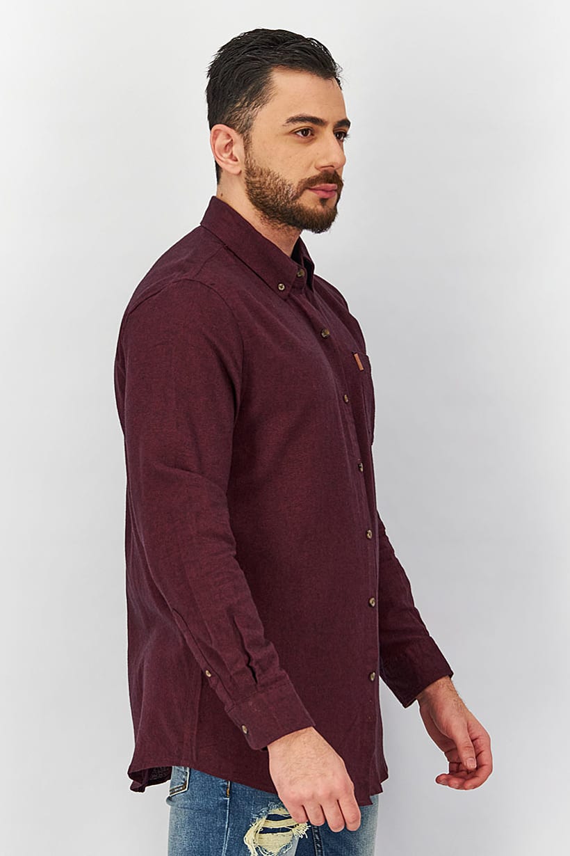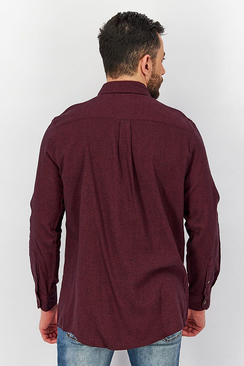 Care : Machine washable, Fit : Regular fit, Size shown : International, Sleeve Length : Long Sleeve, Types of Hem : Curved hem, Types of Neckline & Collar : Button down collar, Disclaimer : Product color may slightly vary due to photographic lighting sources or your monitor settings., Fabrics : 100% Cotton, Occasion : Casual, Pattern & Print : Heather, Types of Closures : Button, Color Family : Maroon,