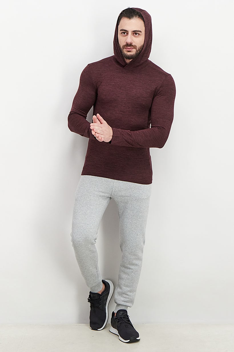 | nameOriginal | Men Sportswear Fit Heather Hooded Sweater, Maroon |