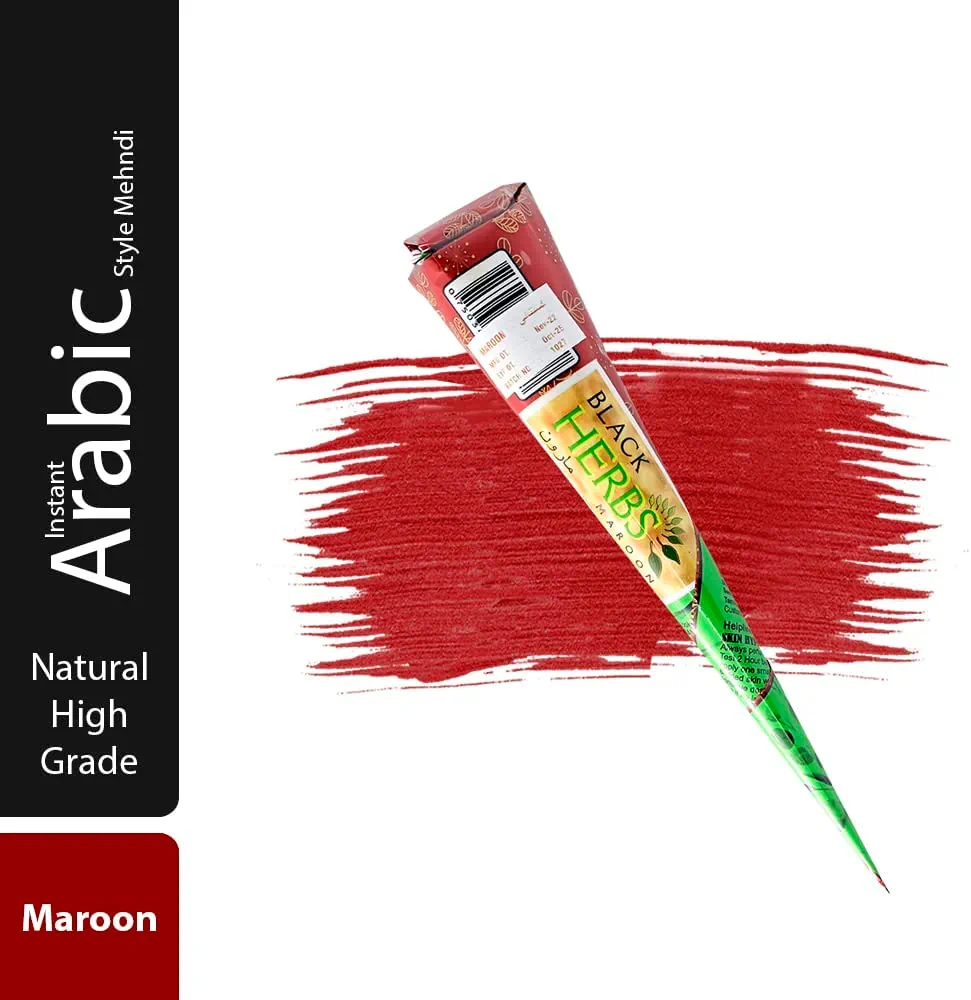 | nameOriginal | Black Herbs 100% Pure Henna Mehandi Paste in Cone for Hands Tattoo Standard Size, 25 gms – Maroon |