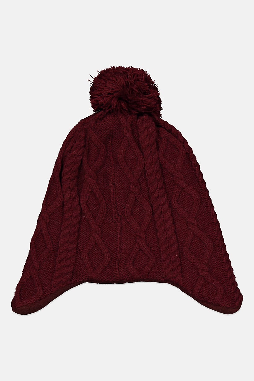Kids Boy Knit Pompom Trapper Beanie, Maroon