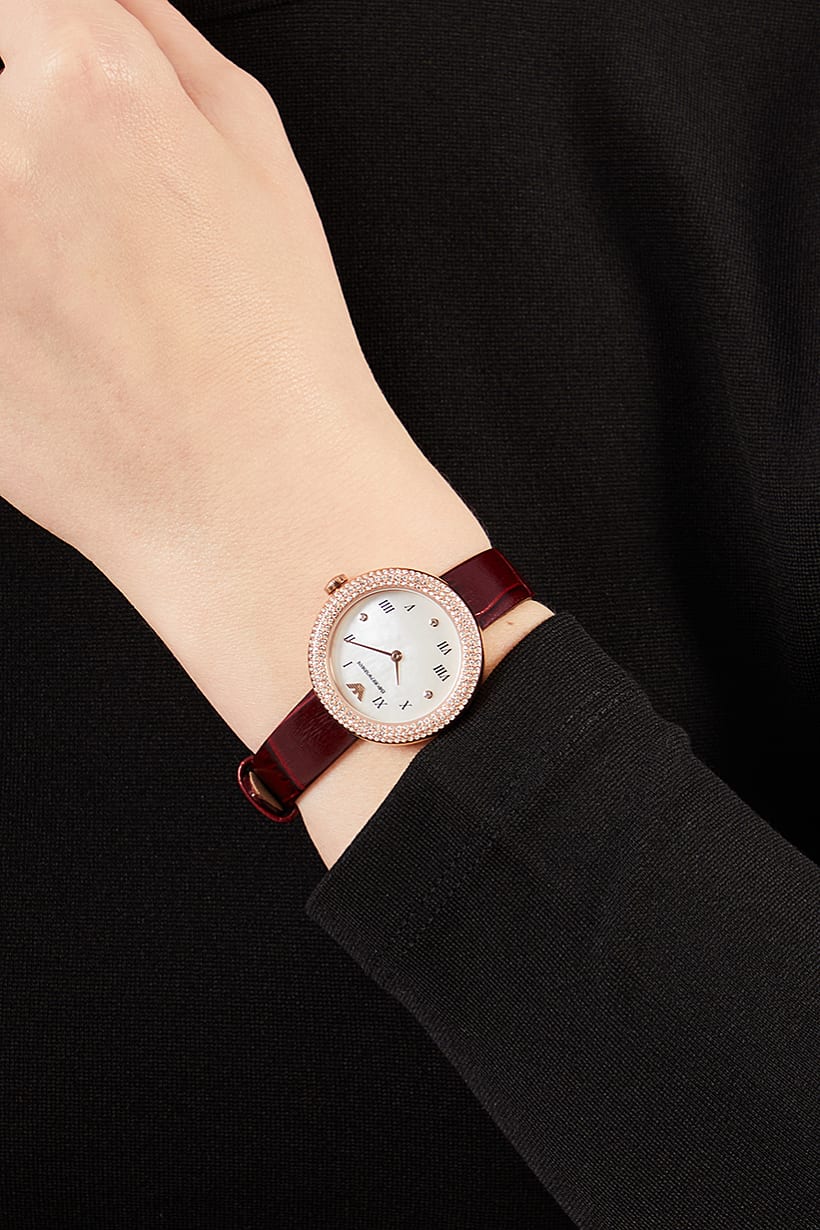 | nameOriginal | Women AR11357 Round Dial Leather Watch, Maroon |