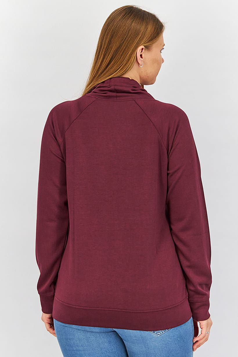 | nameOriginal | Women Cowl Neck Long Sleeve Plain Tops, Maroon |