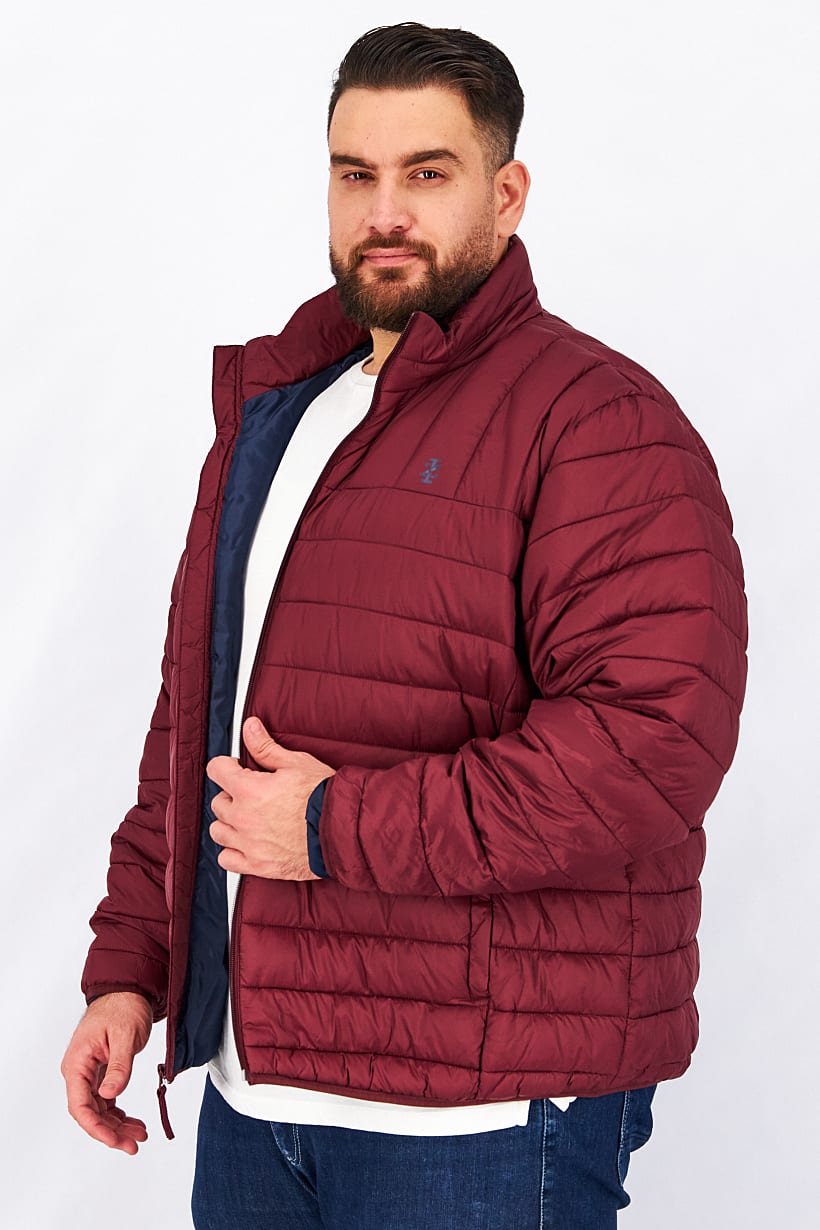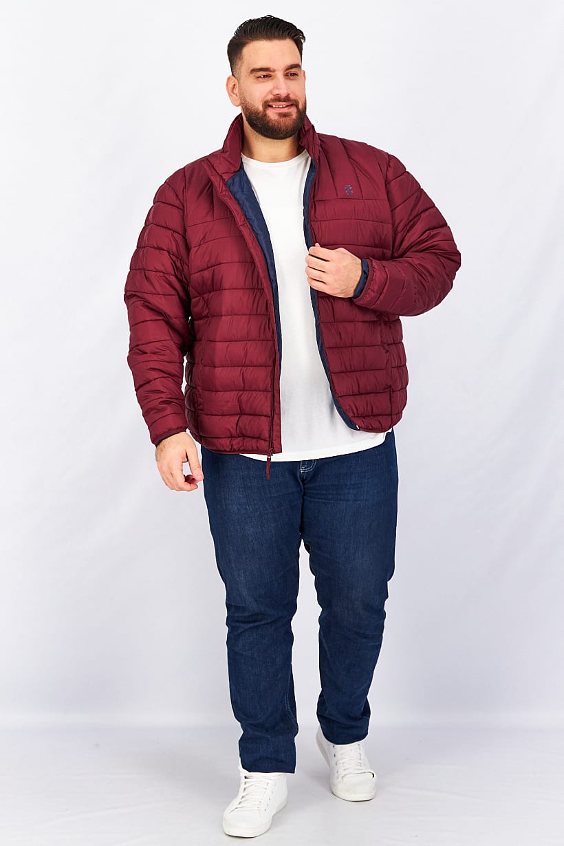 Maroon Quilted Bomber Jacket with Brand Logo for Men.