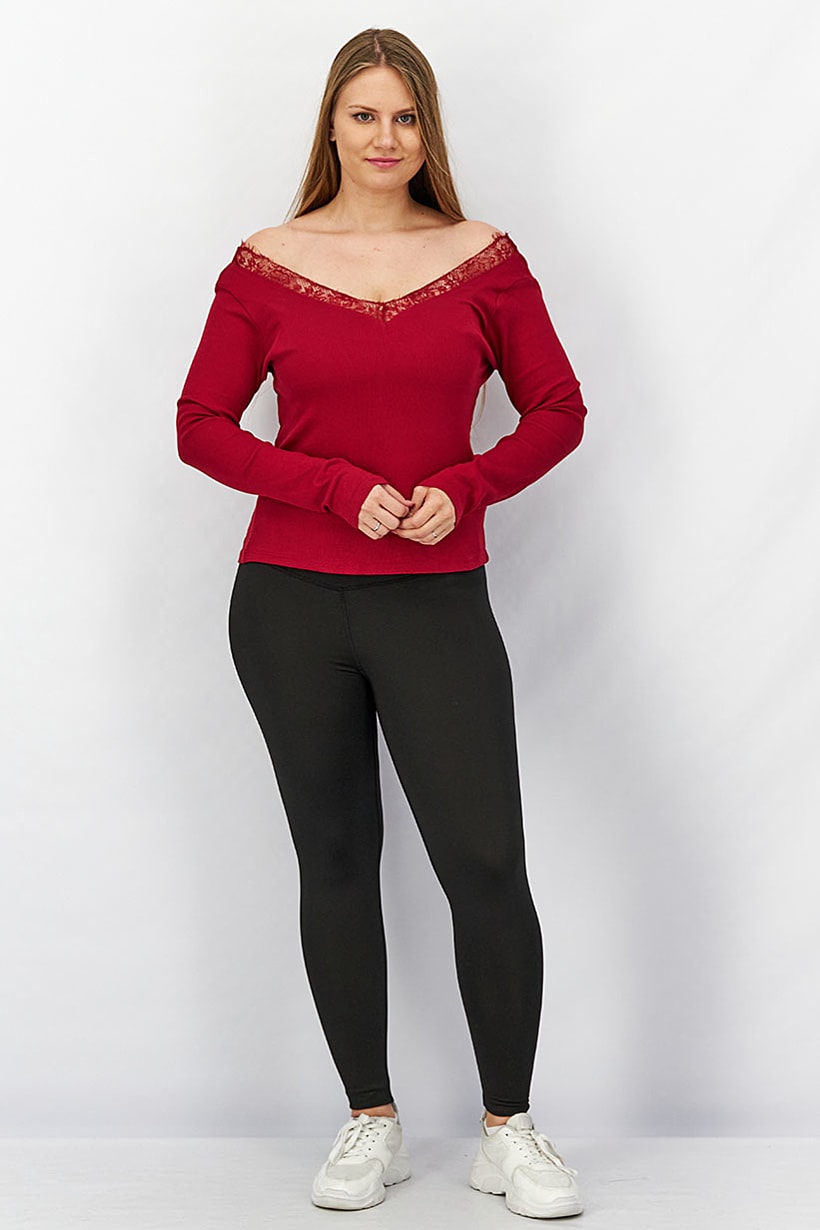 | sub_Categories | Women Clothing, Tops & Tees, women v neck long sleeves rib top maroon |