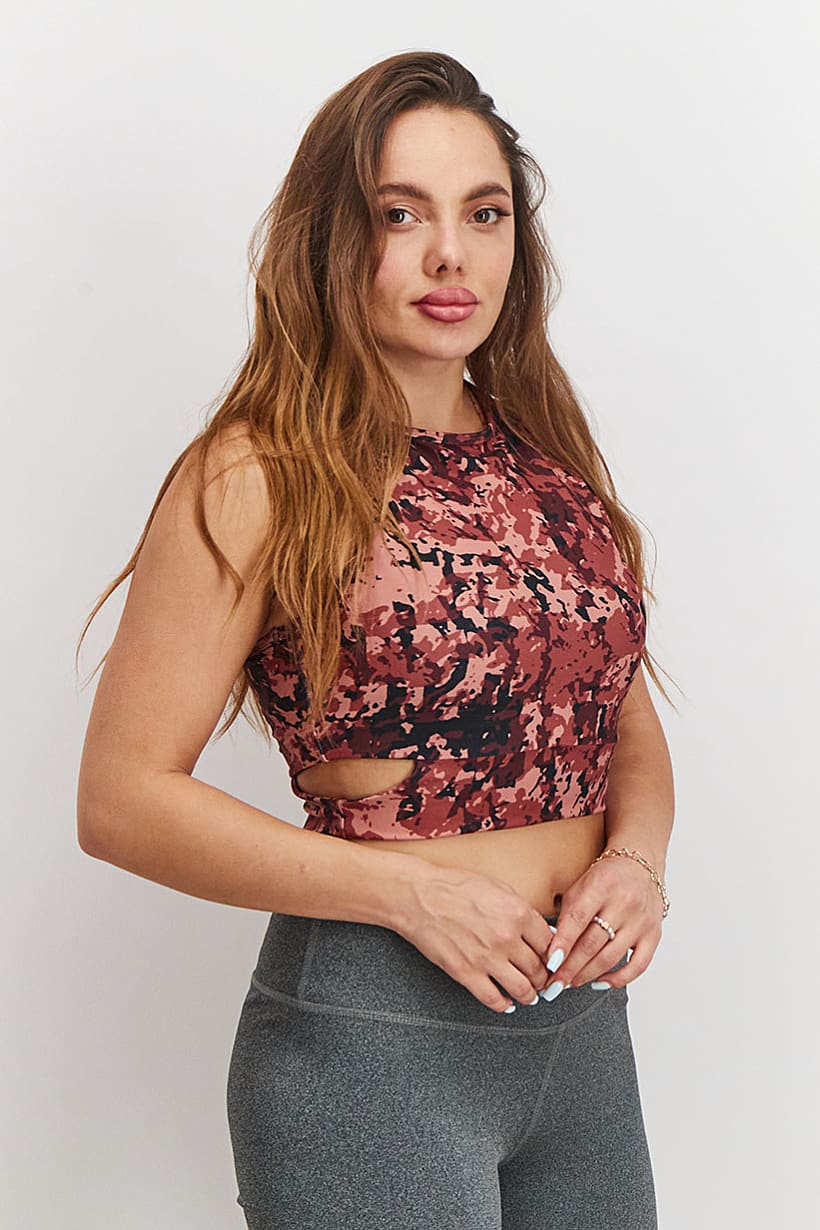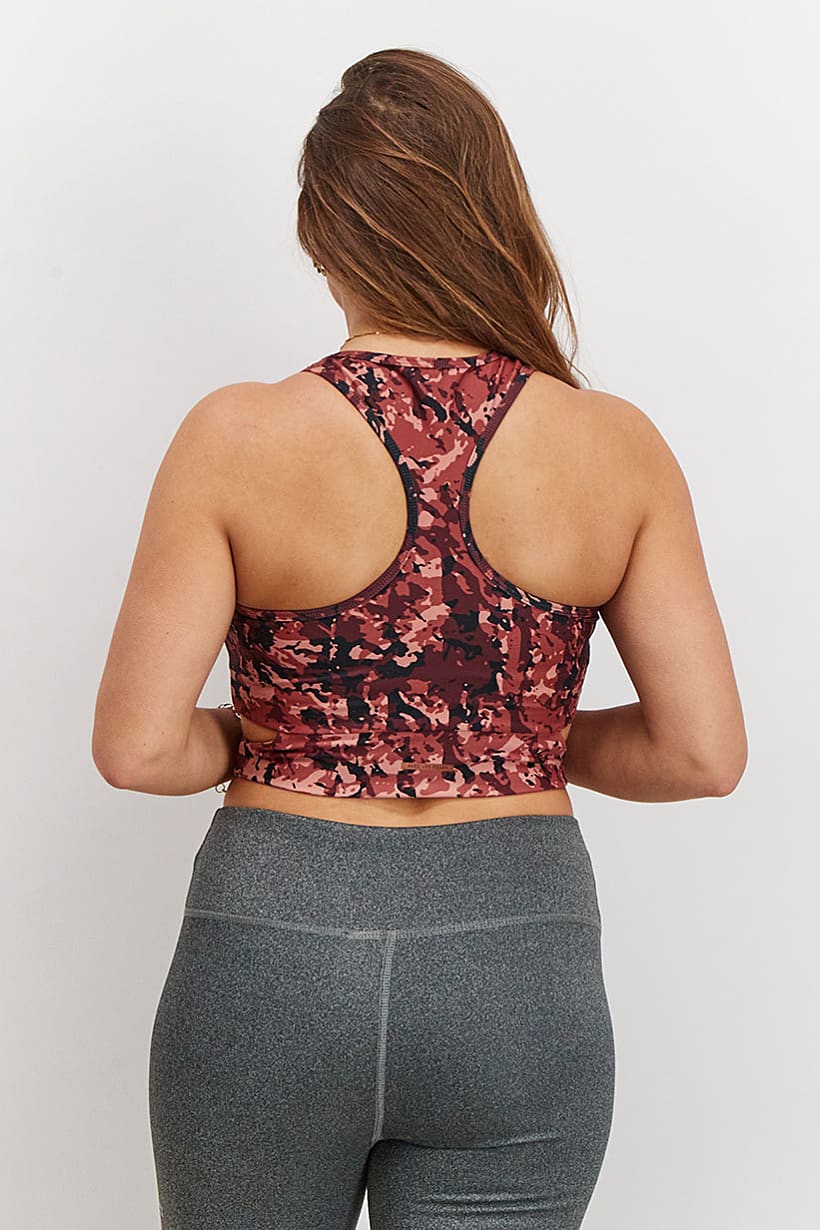 Care : Machine washable, Fit : Sportswear Fit, Size shown : International, Thickness : Light, Type of Sport : Training, Disclaimer : Product color may slightly vary due to photographic lighting sources or your monitor settings., Fabrics : 78% Polyester, 22% Spandex, Occasion : Sport, Pattern & Print : Camouflage, Sportswear Type : Sports Bra, Color Family : Maroon,