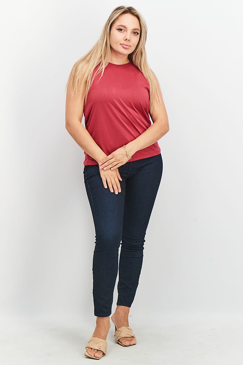| nameOriginal | Women Round Neck Sleeveless Solid Top, Maroon |