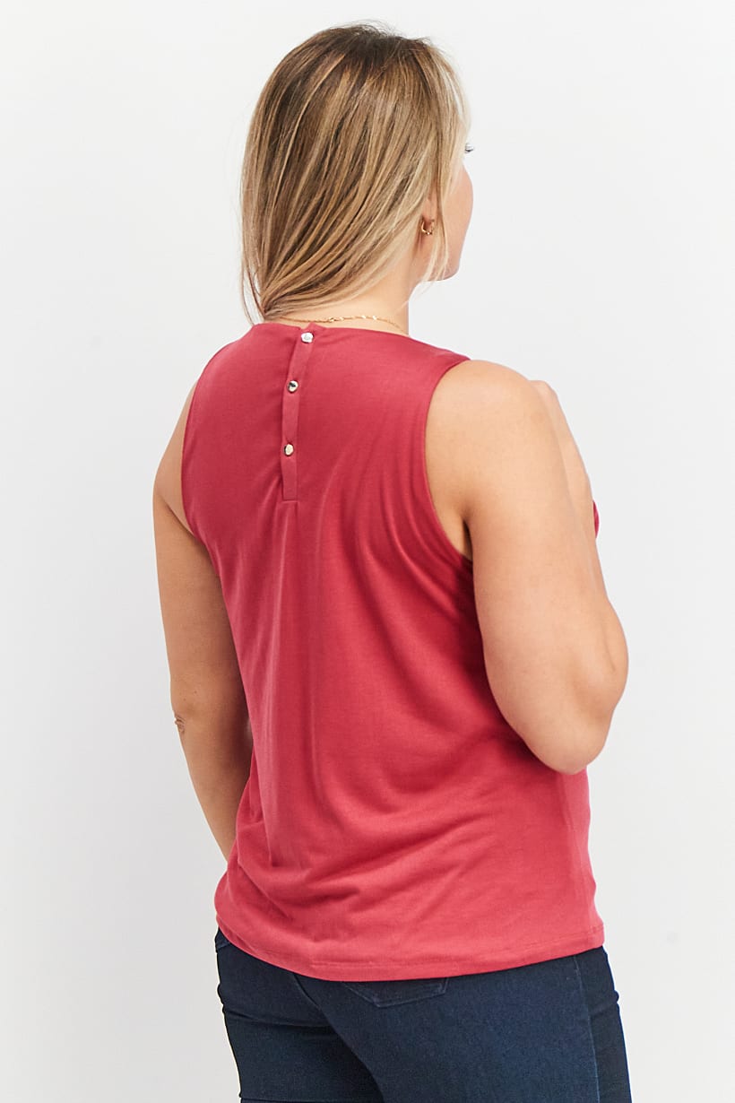 | sub_Categories | Women Clothing, Tops & Tees, women round neck sleeveless solid top maroon |