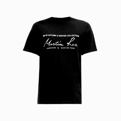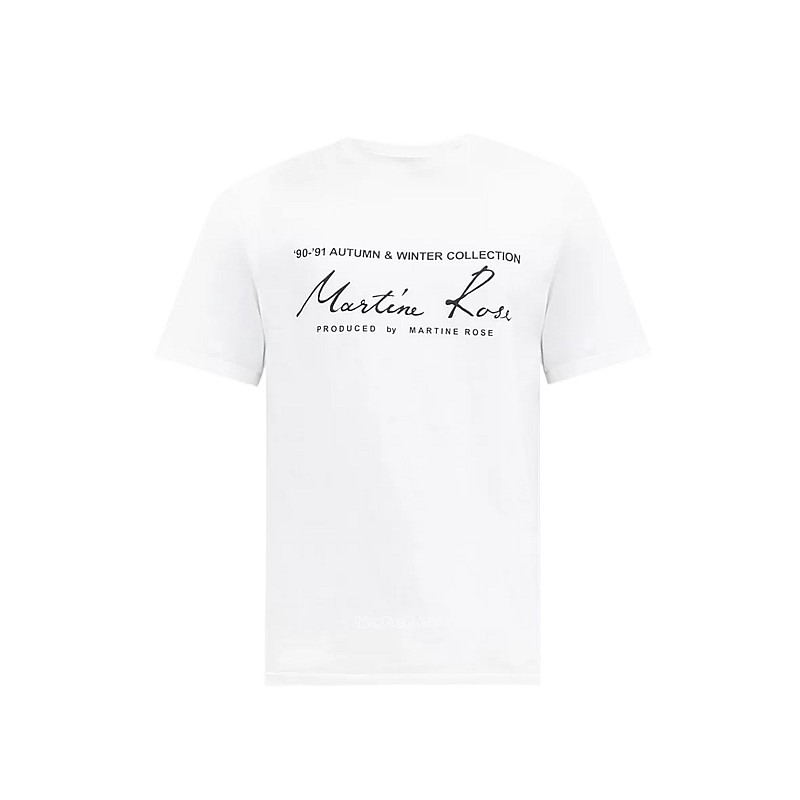 | nameOriginal | Martine Rose designer cursive signature printed slogan round neck black and white short-sleeved T-shirt Wang Jiaer's same style |
