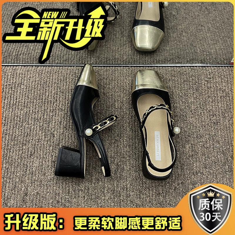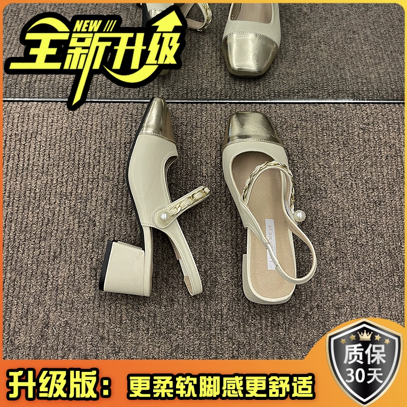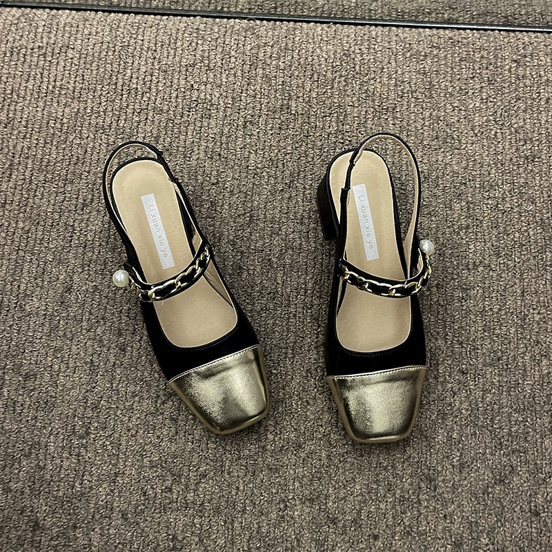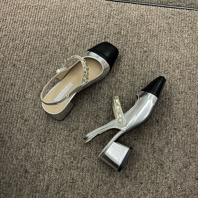 | nameOriginal | Mary Jane color block square toe block heel slip-on sandals |