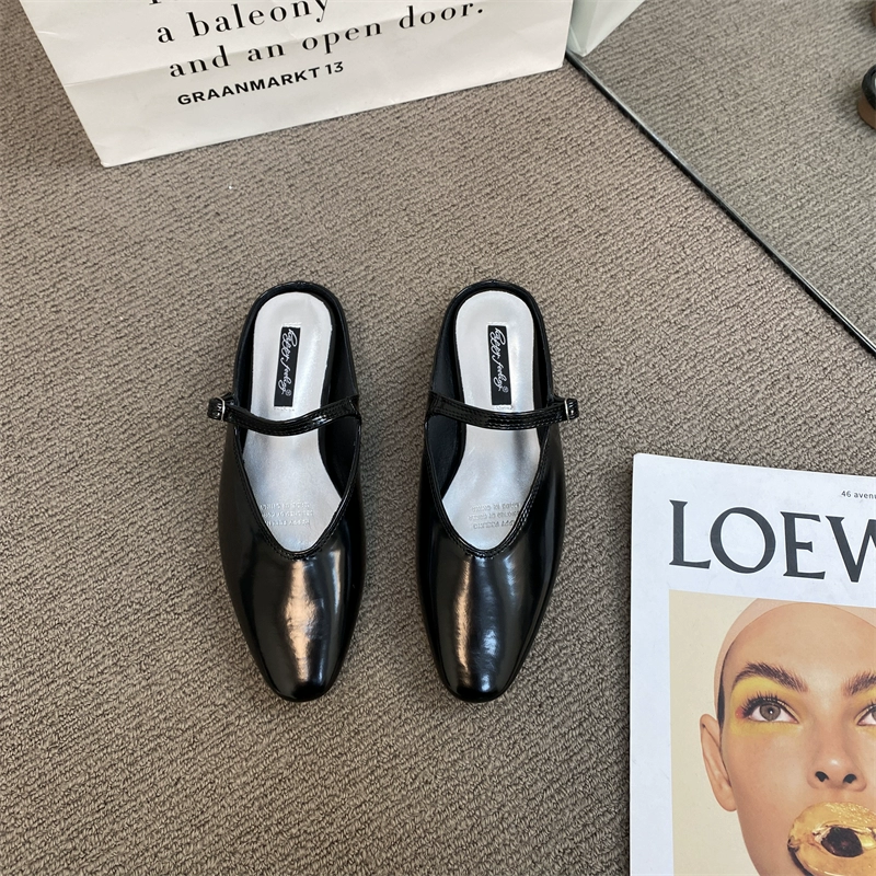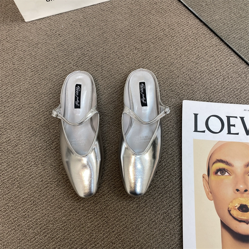 | nameOriginal | Mary Jane French toe silver flat half slippers |