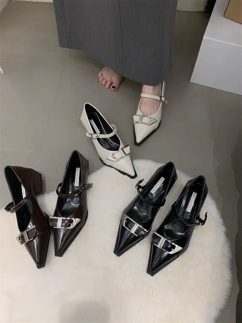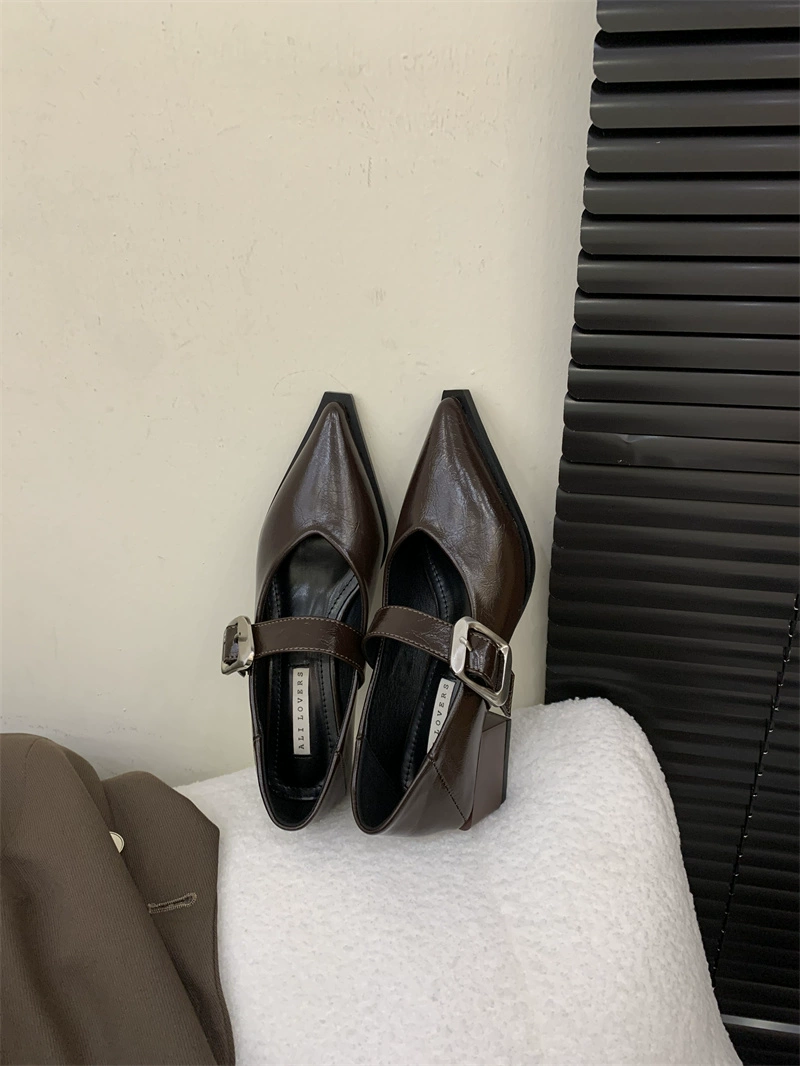 | nameOriginal | Mary Jane pointed toe Korean style fashionable retro thick heel shoes |