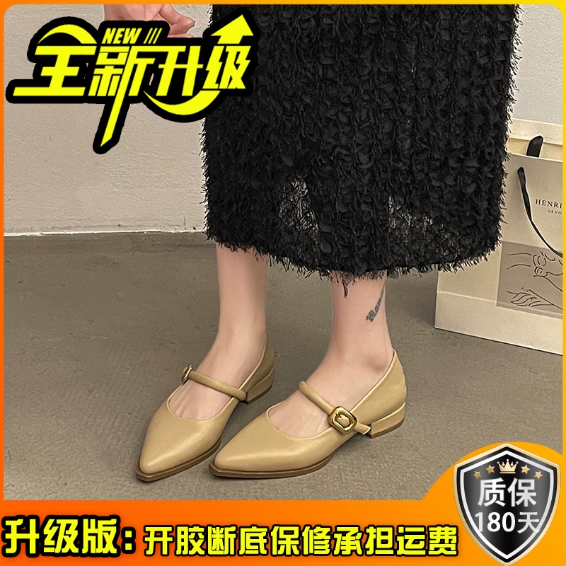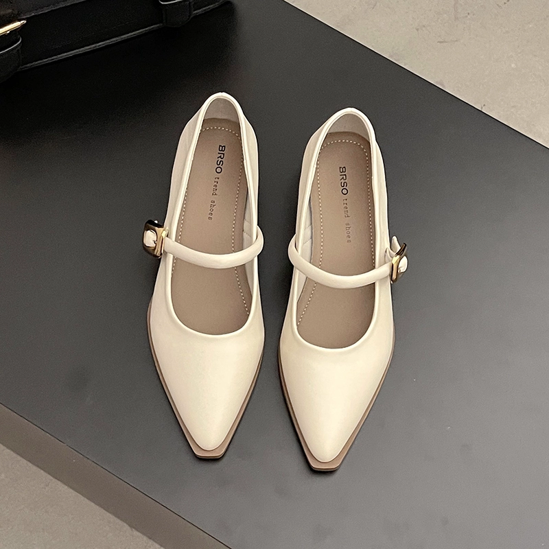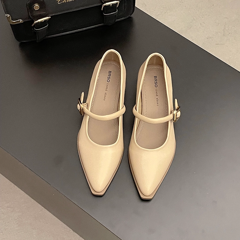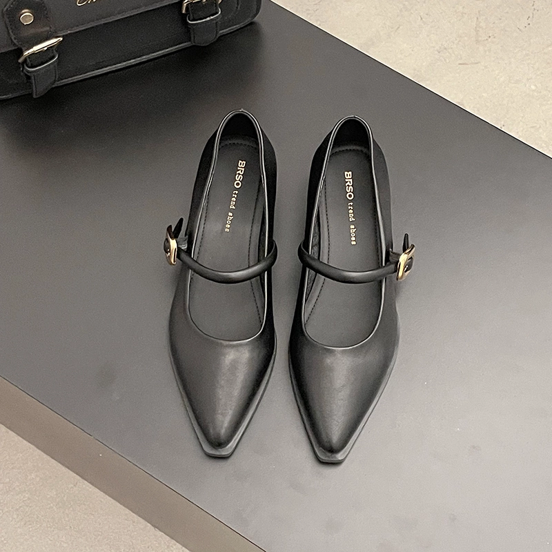 Mary Jane pointed toe shallow mouth spring retro low-heeled shoes