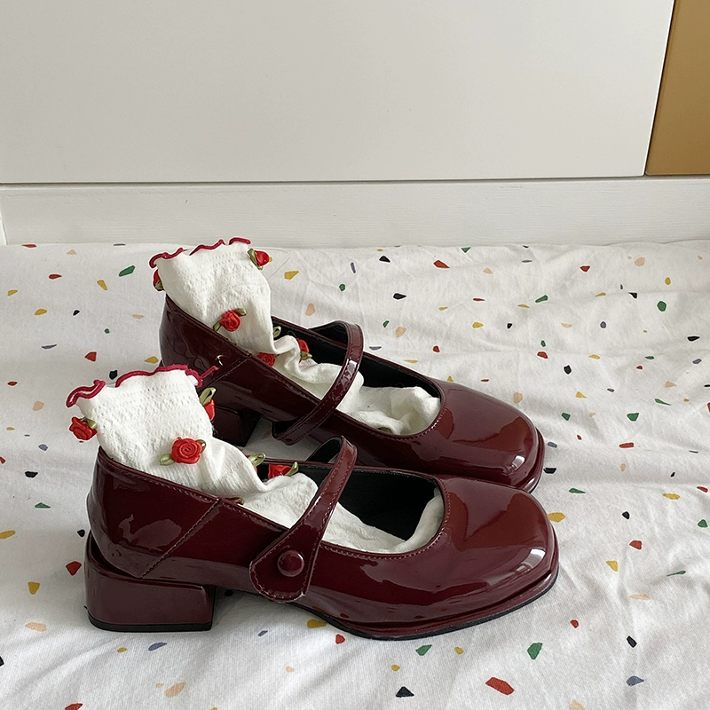 | nameOriginal | Mary Jane red mid-heeled preppy leather shoes |