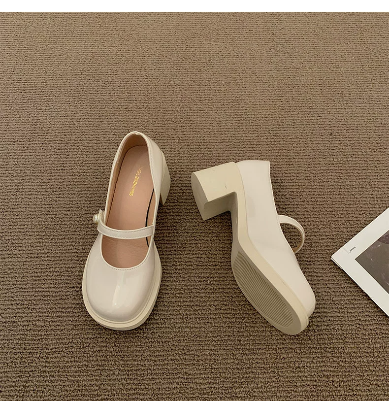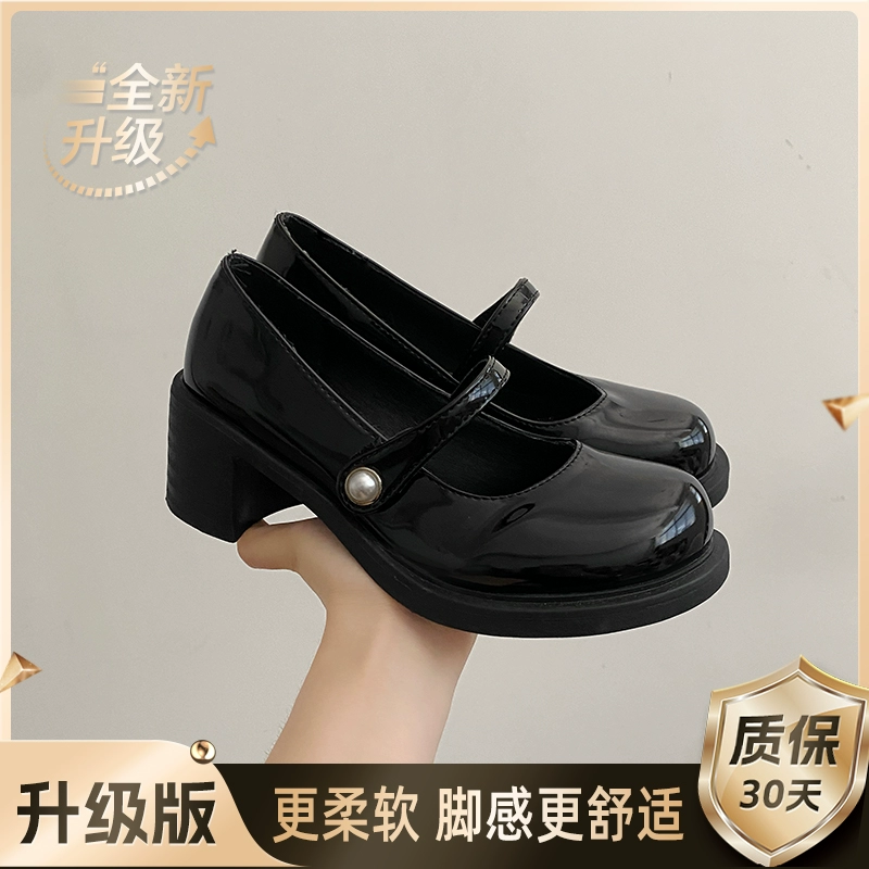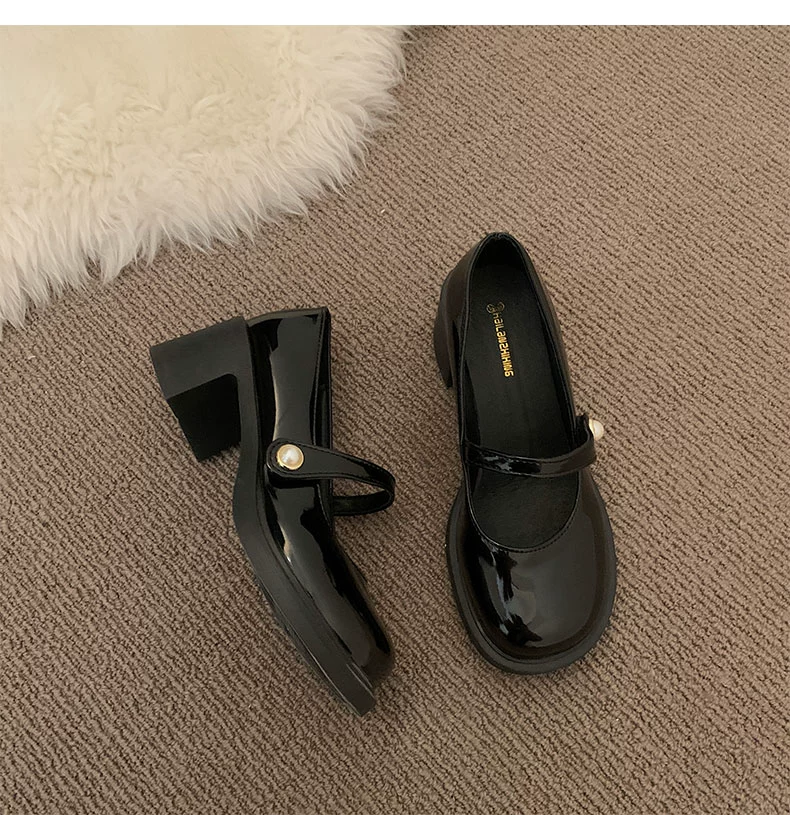 | nameOriginal | Mary Jane round toe thick heel retro black leather shoes |