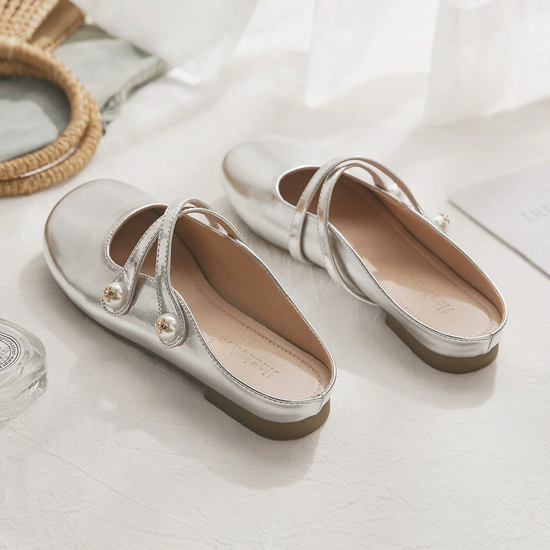 | nameOriginal | Mary Jane sheepskin flat-soled silver toe-cap women's shoes |