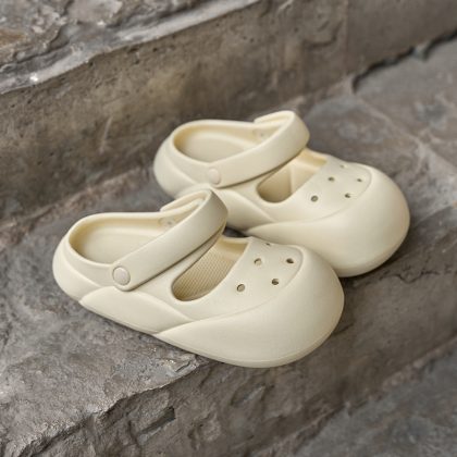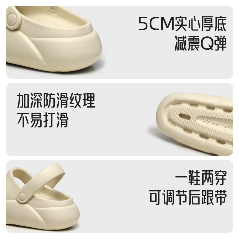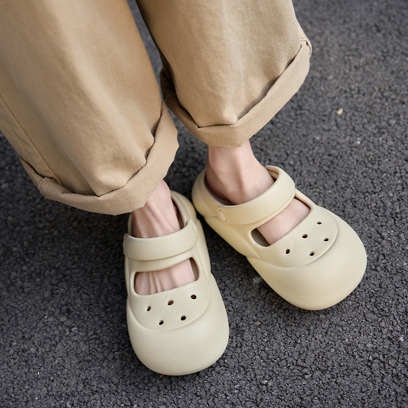 Mary Jane slippers women’s summer wear non-slip eva breathable slip-on thick bottom hole shoes closed toe half slippers sandals