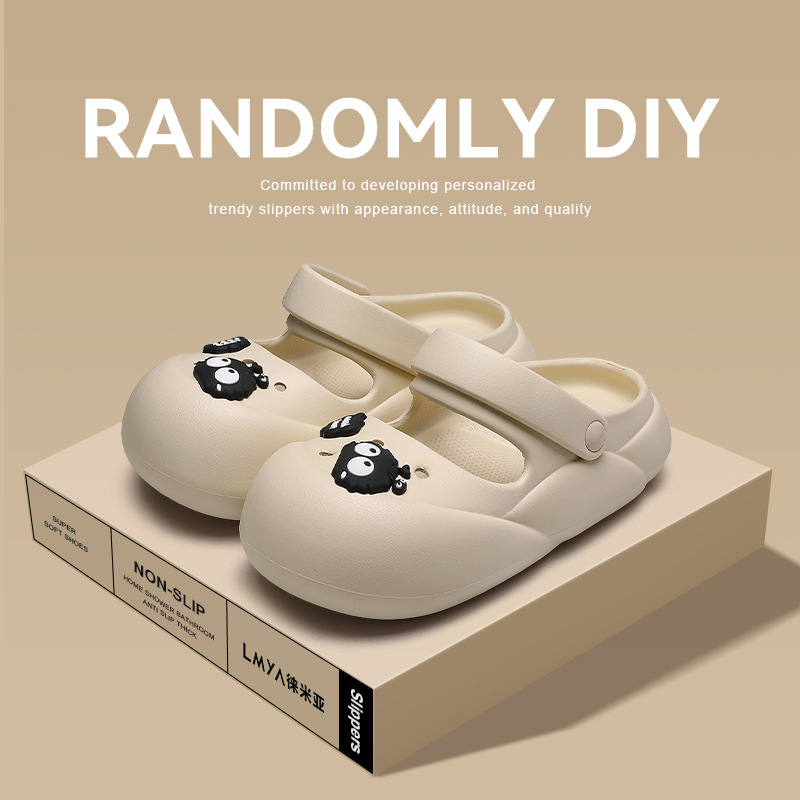 Mary Jane slippers women’s summer wear non-slip eva hole shoes home thick bottom slip-on closed toe half slippers