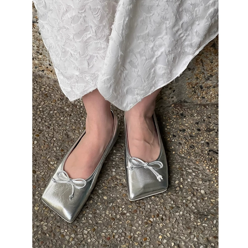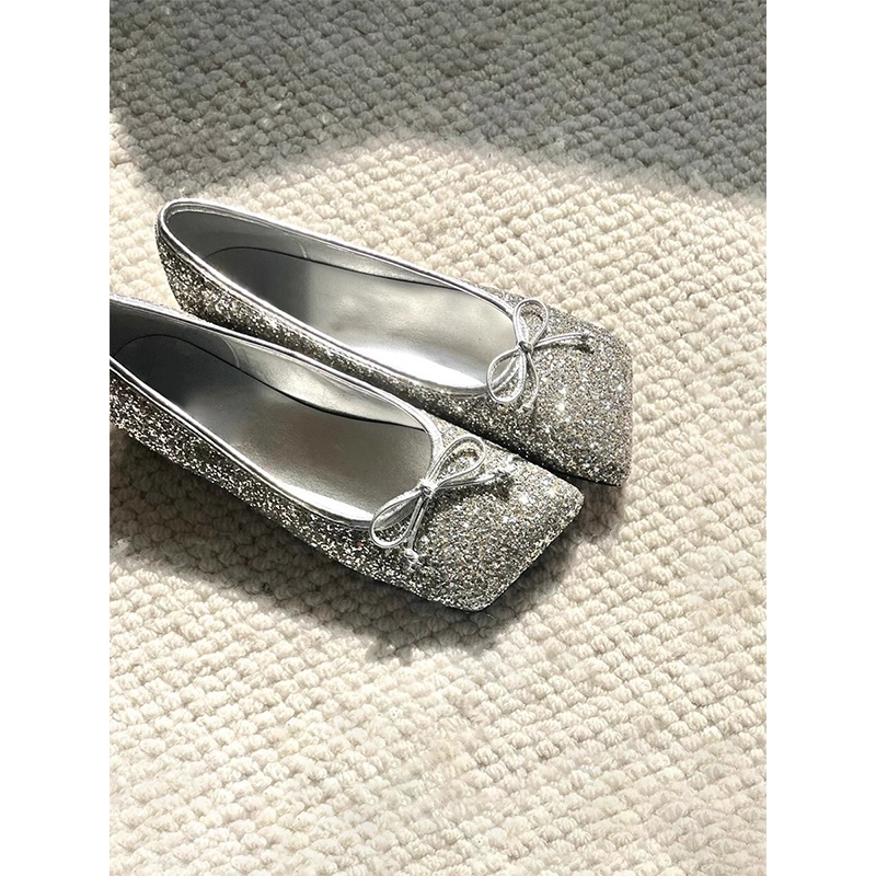 | nameOriginal | Mary Jane square toe evening bow silver women's shoes |