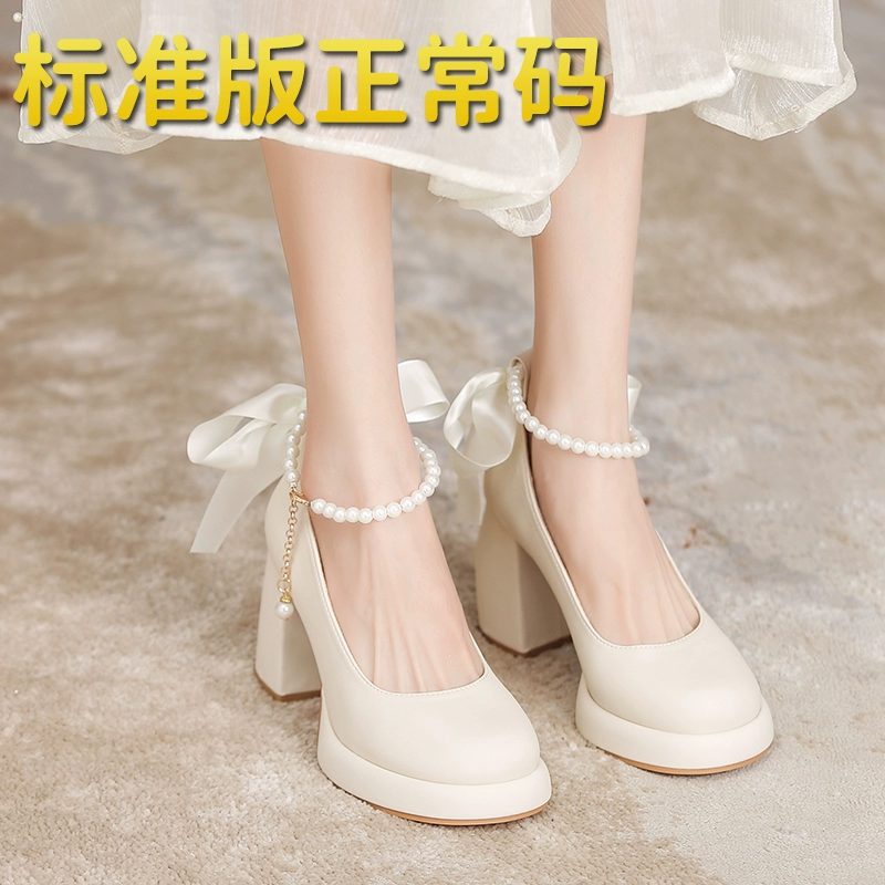 | nameOriginal | Mary Jane with skirt, thick heel French platform wedding shoes |
