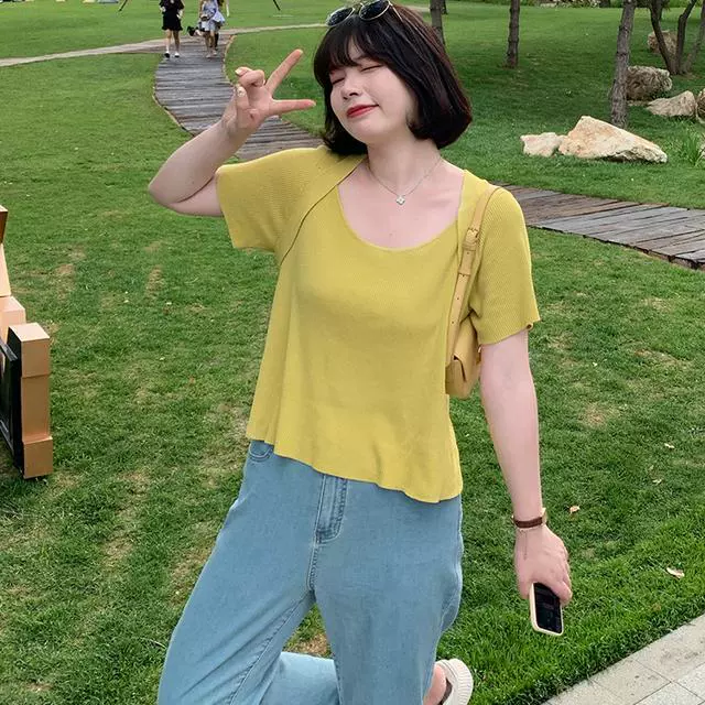 Masisi large size T-shirt 2-300 pounds, hot girl style design, right shoulder, short sleeves, loose, belly-covering, large round neck top