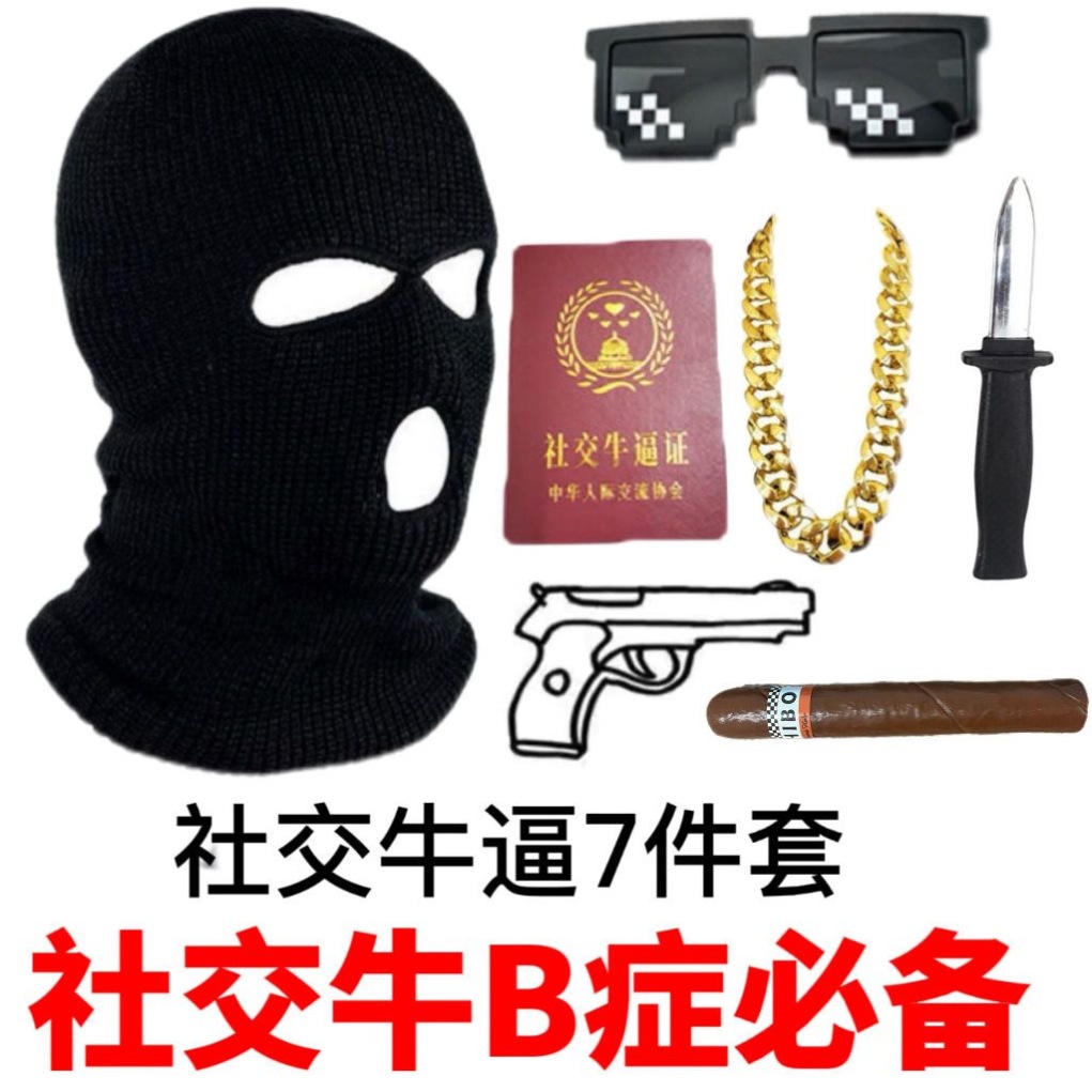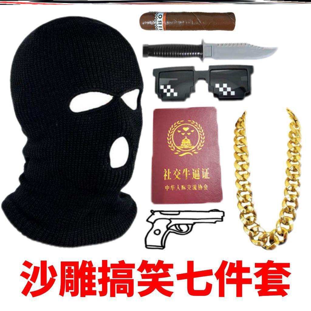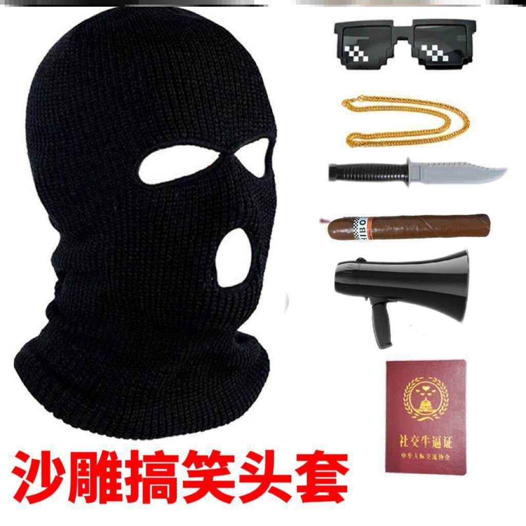 | nameOriginal | Mask Gangster Social Niubi Headgear Same Style Sand Sculpture Funny Headgear Silly Sculpture Riding Windproof Breathable Black Headgear |