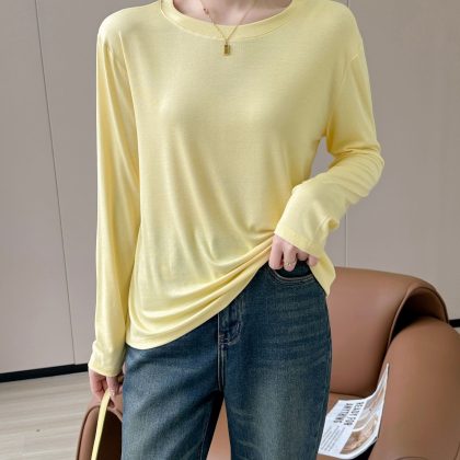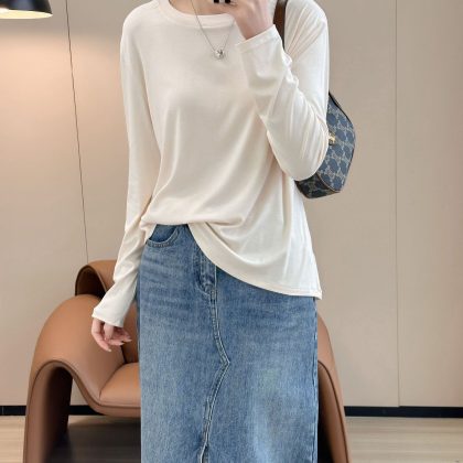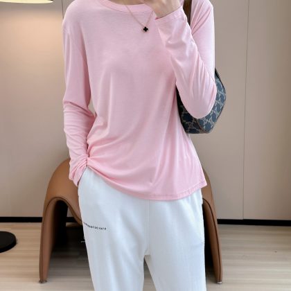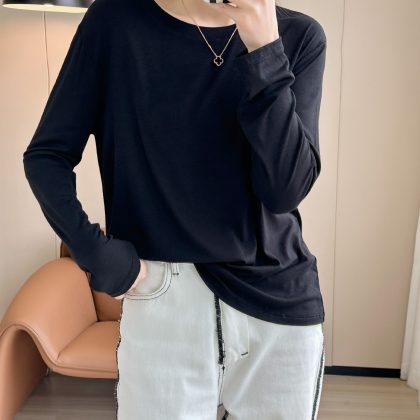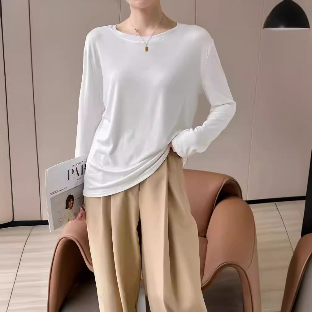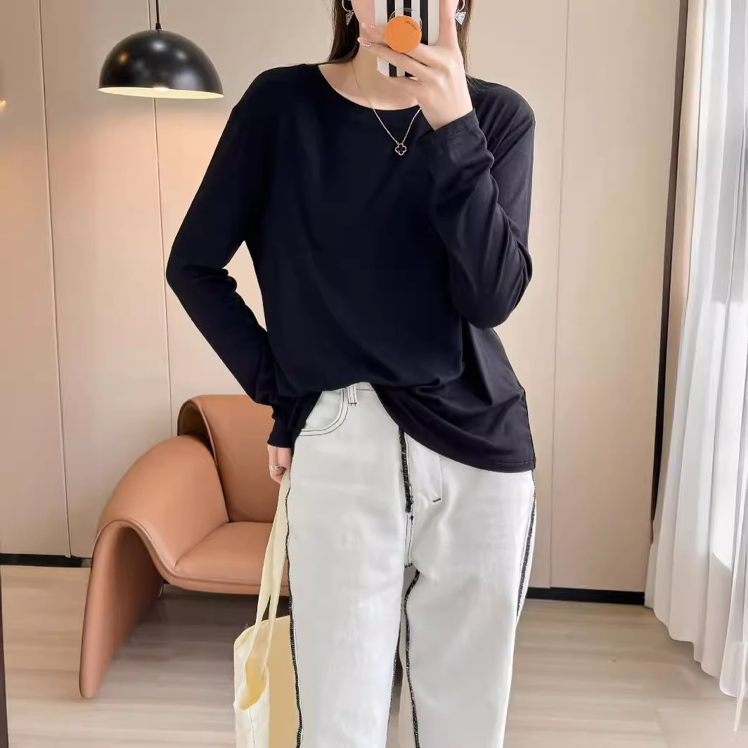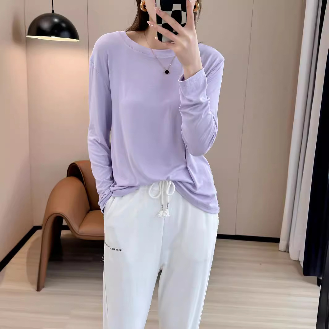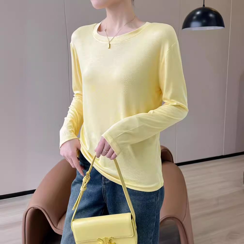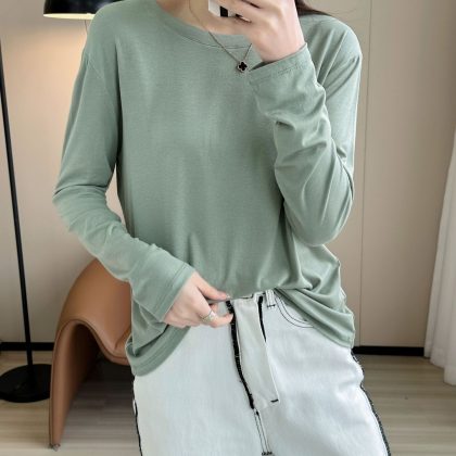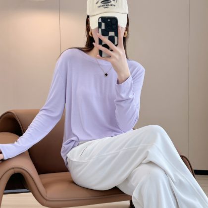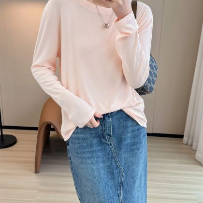 Mask sun protection T-shirt women’s spring and summer thin blouse split loose all-match round neck long sleeve air conditioning bottoming shirt