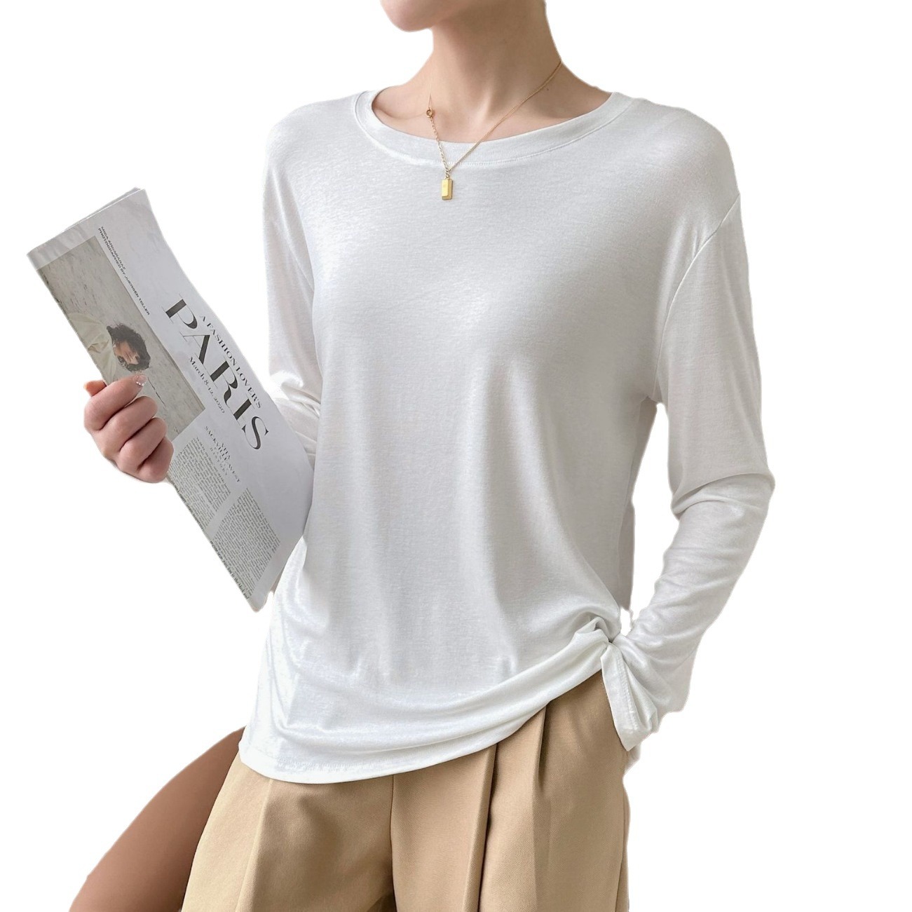Mask sun protection T-shirt women's spring and summer thin blouse split loose all-match round neck long sleeve air conditioning bottoming shirt