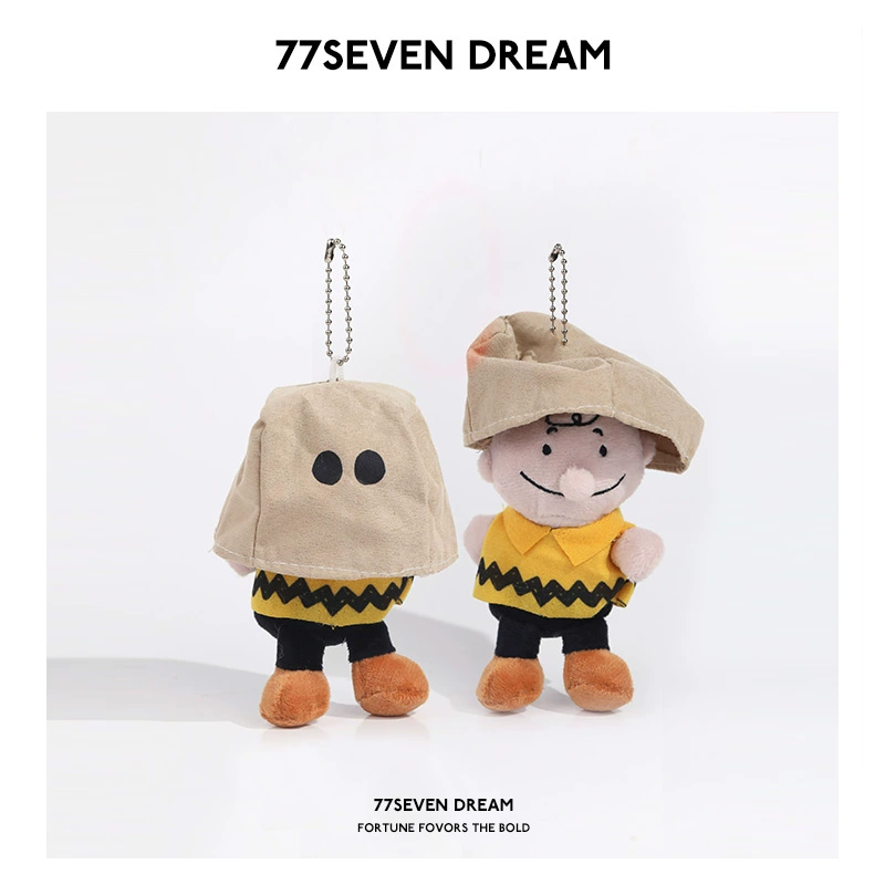 Masked Snoopy Charlie doll schoolbag bag pendant with plush keychain cute cartoon paper bag hooded doll