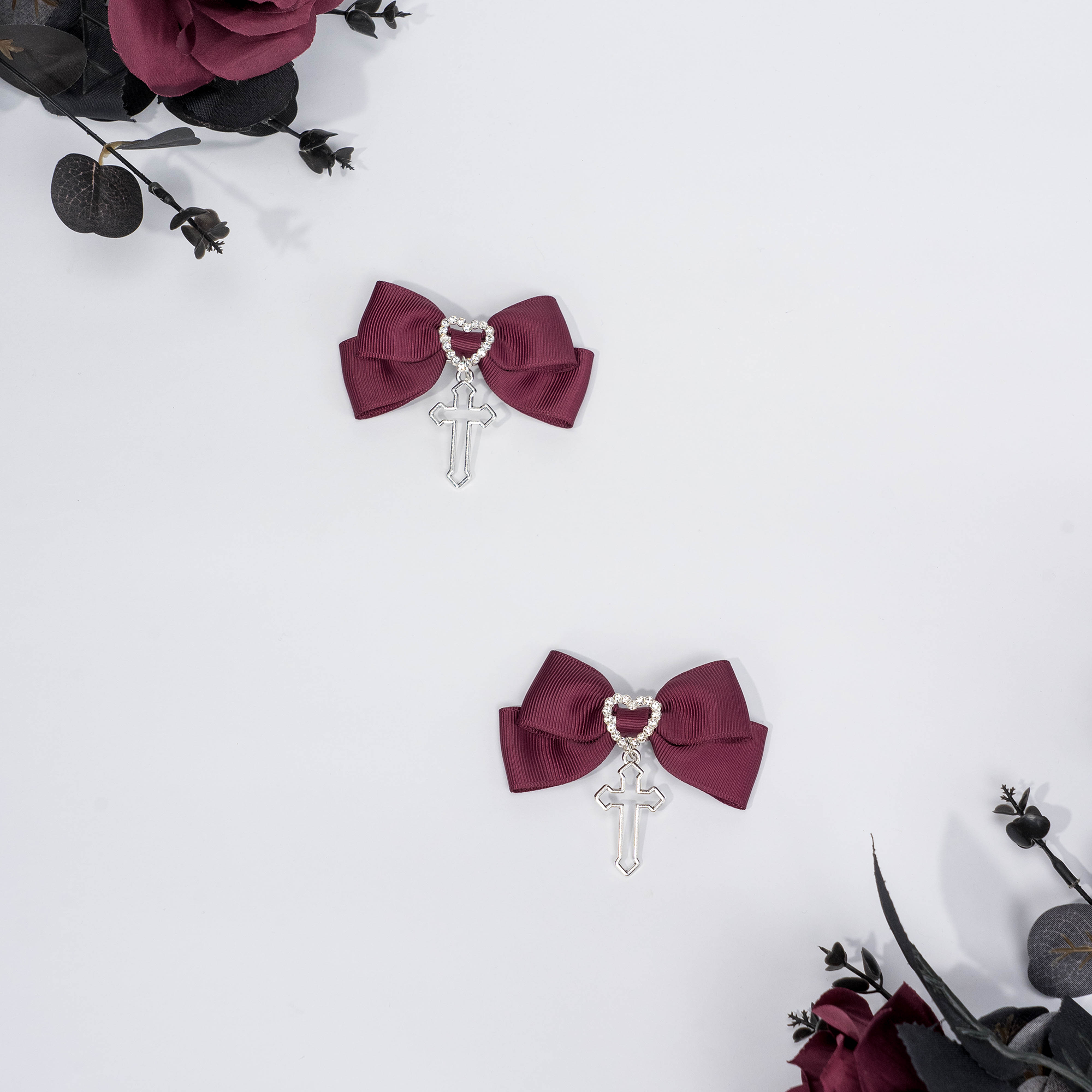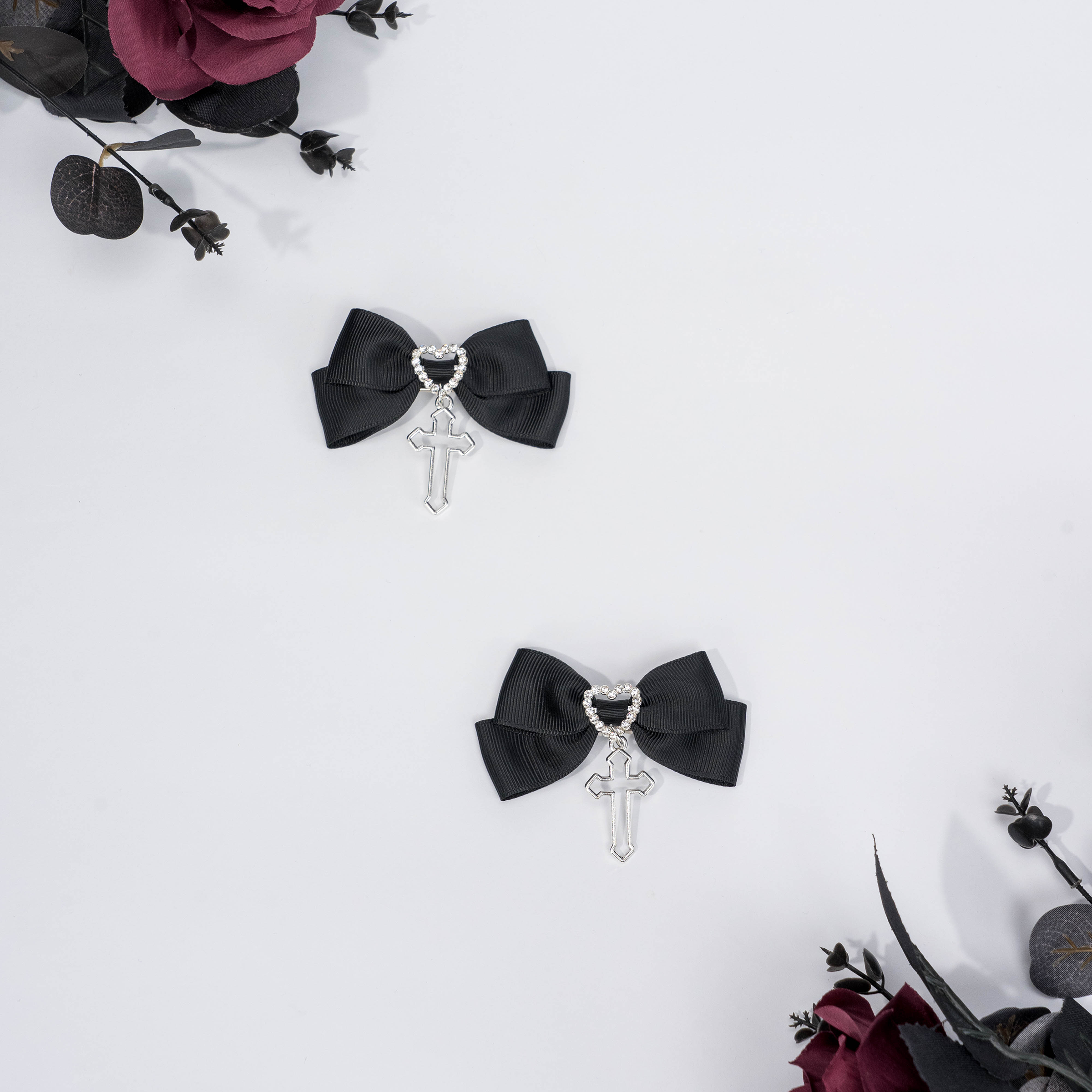 Mass-produced cross hairpin dark gothic bow