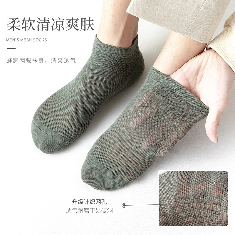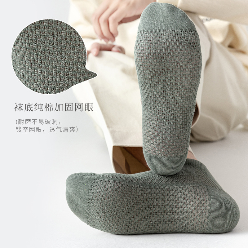 Massage Bottom Mesh Boat Socks Men's Spring and Summer Shallow Mouth Invisible Cotton Socks Thin No-Drop Simple All-Match Antibacterial Deodorant Socks