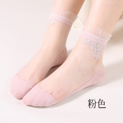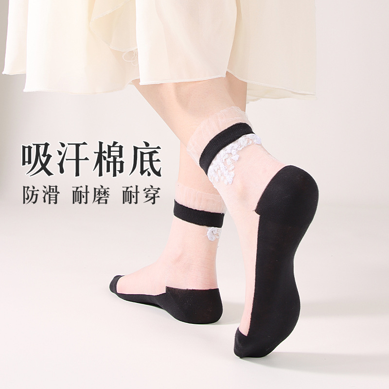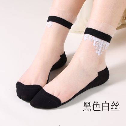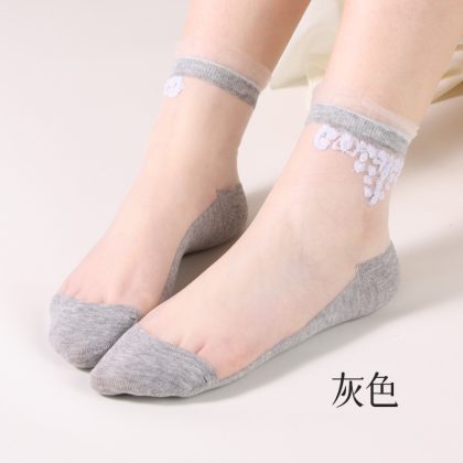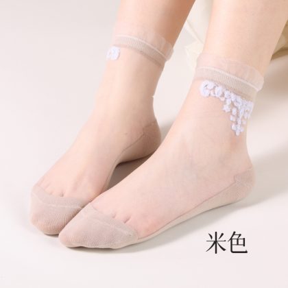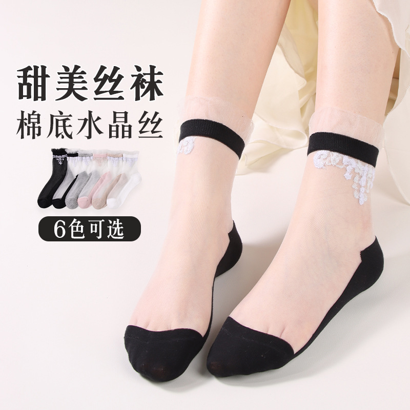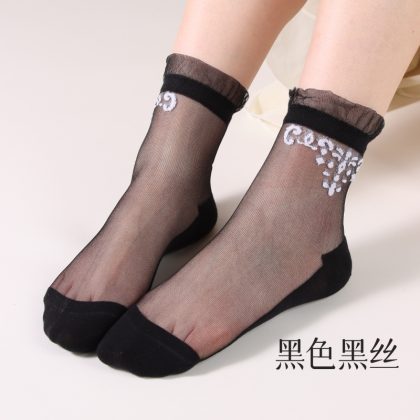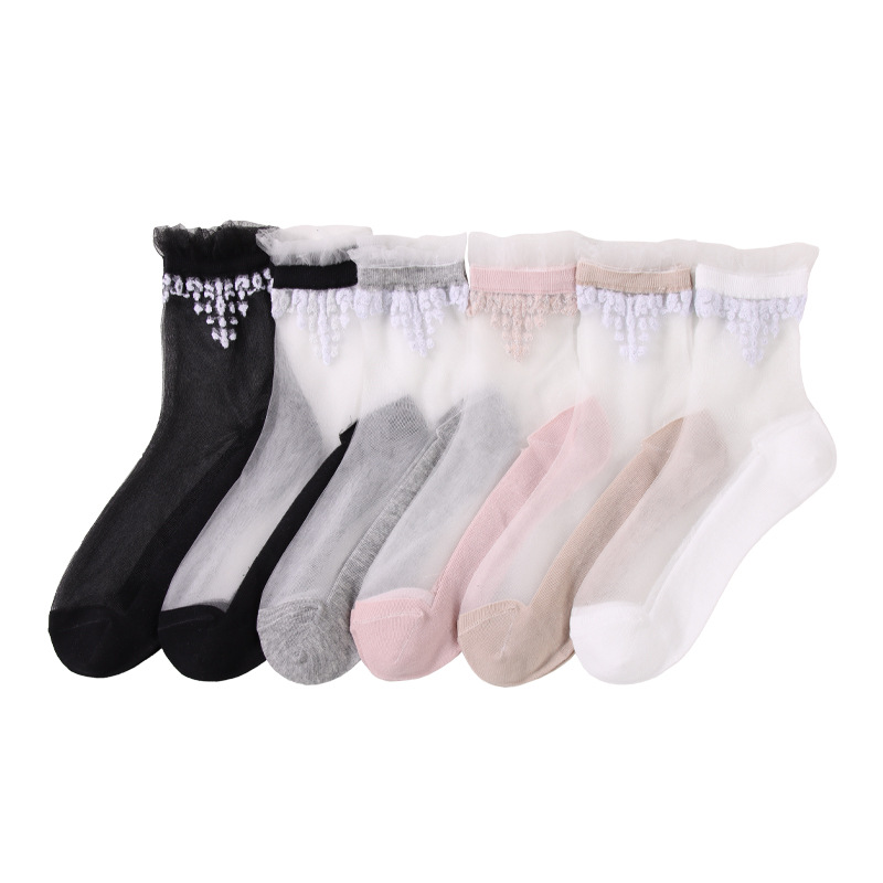 MasterCard Fashion Transparent Crystal Cotton Bottom Women Socks Pearl Flower Crystal Silk Women Socks Crystal Silk Year Women Socks Wholesale