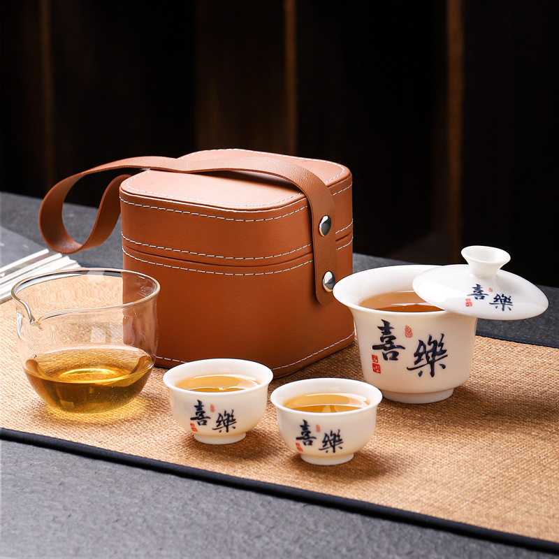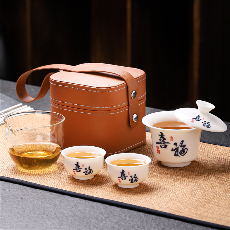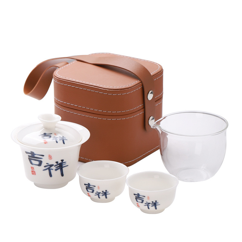 Mat fat jade hovering three-cap bowl portable travel kung fu tea set quick cup one pot two cups glass male cup