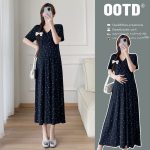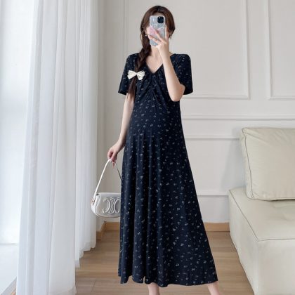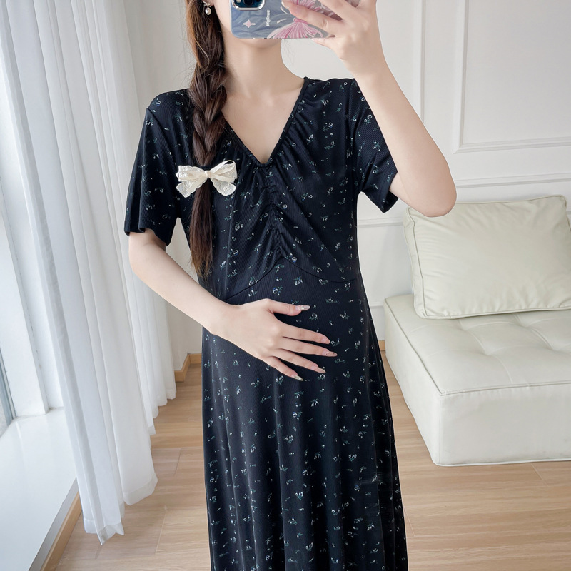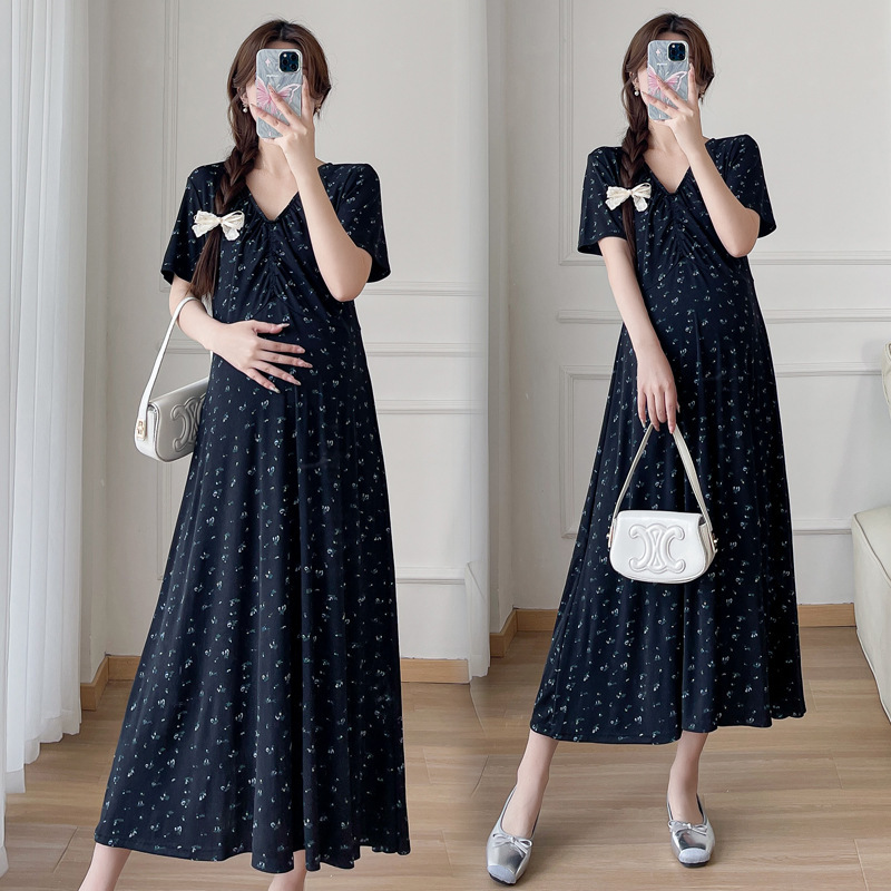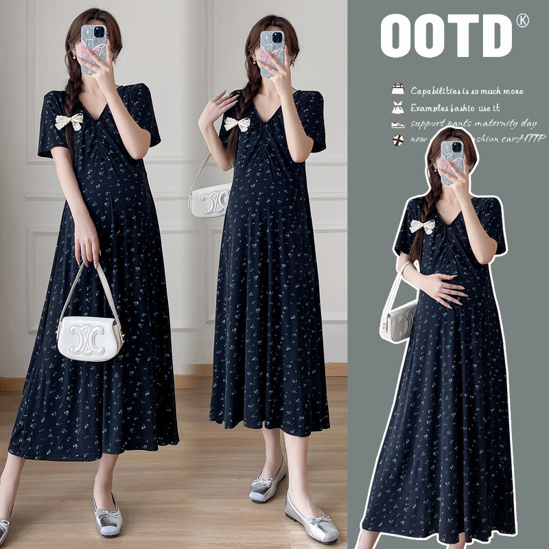 Maternity 2024 New Pregnant Women Summer Fashion V-neck Floral dress Age-reducing Slimming plus size Temperament Long Dress