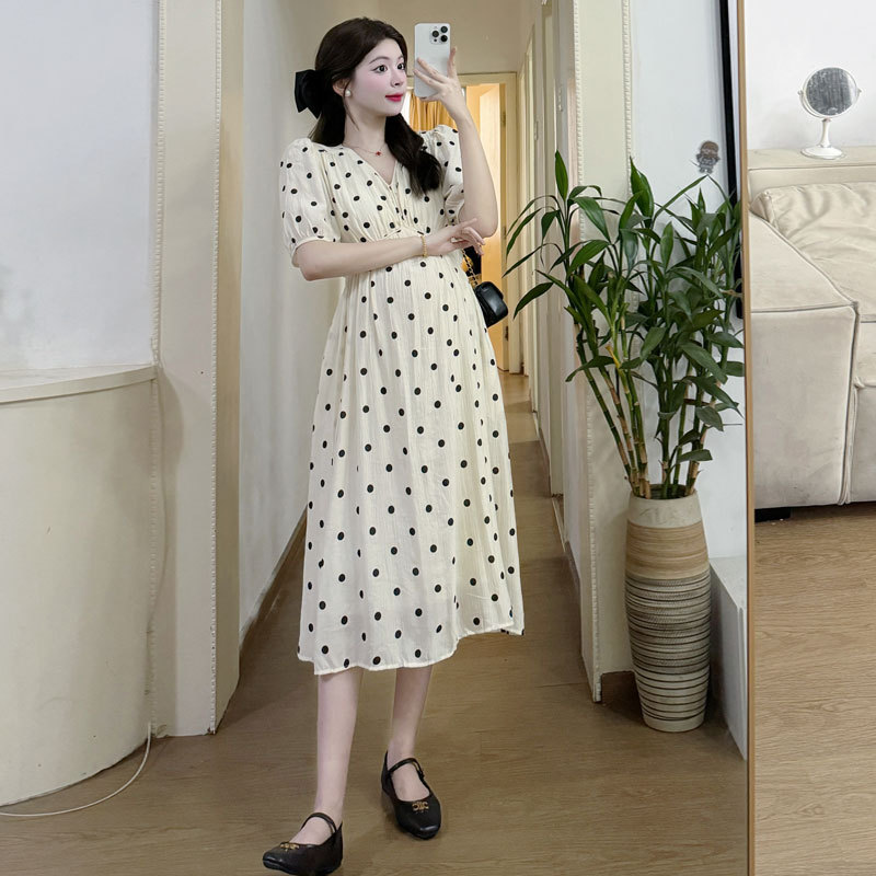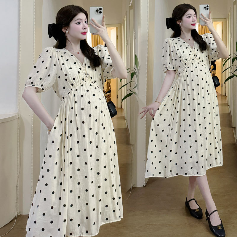 | nameOriginal | Maternity 2024 Summer Fashion Polo Dot V-neck French Simple Slimming Retro Puff Sleeve dress |